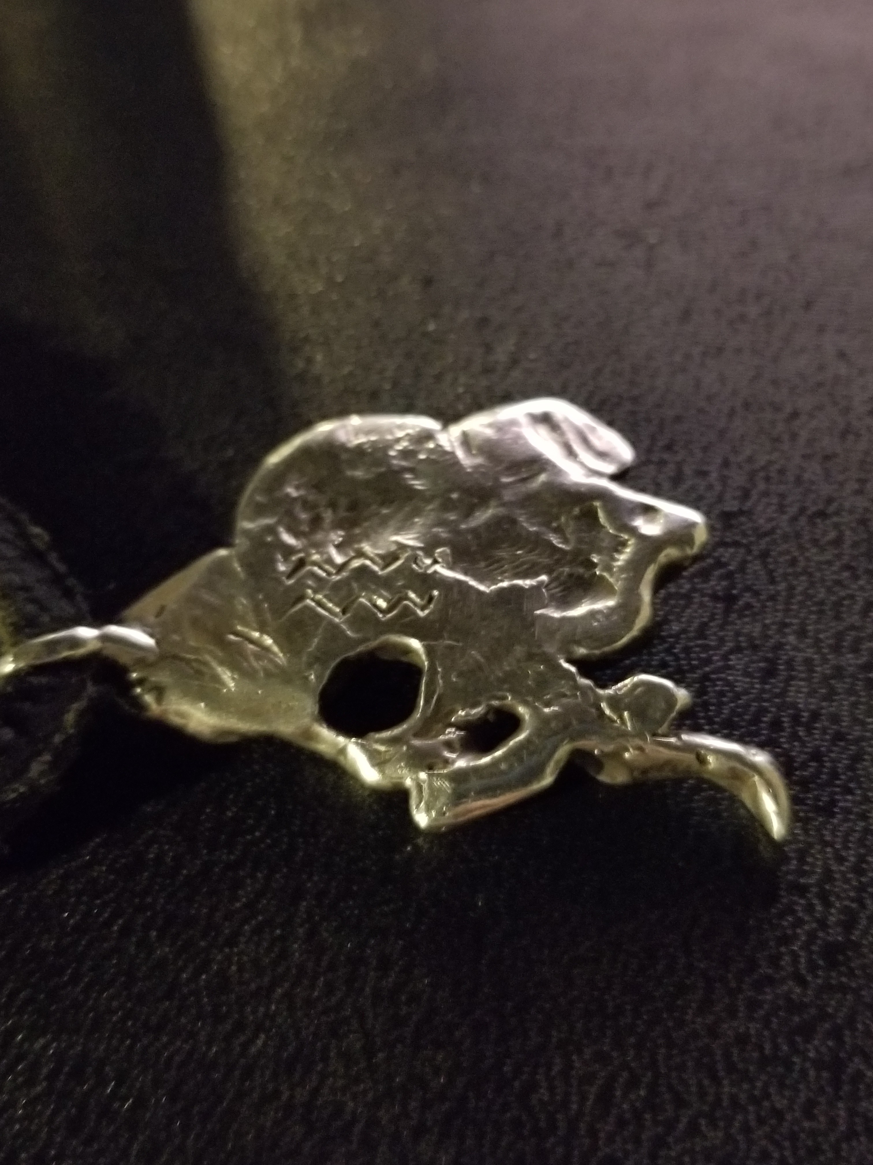 My grandfather died about a decade ago and my mom gave me the piece pictured below and a similar ring that was in his possession. She assumed that the markings on the back stood for the Aquarius sign and since I was the only other one in our family I should have it, so we went forward with that assumption for years. I took it to someone who has studied jewelry to make it into a proper necklace and he informed us that what we thought was an Aquarian symbol was actually a Native American hallmark. Well, that was a shock to me and my mom. So I started to do some light research and didn’t really find anything that looked like the making on the back, so I thought I would try here. Is it indeed a piece of Native American jewelry? Any knowledge or leads would be most appreciated. Thanks.
