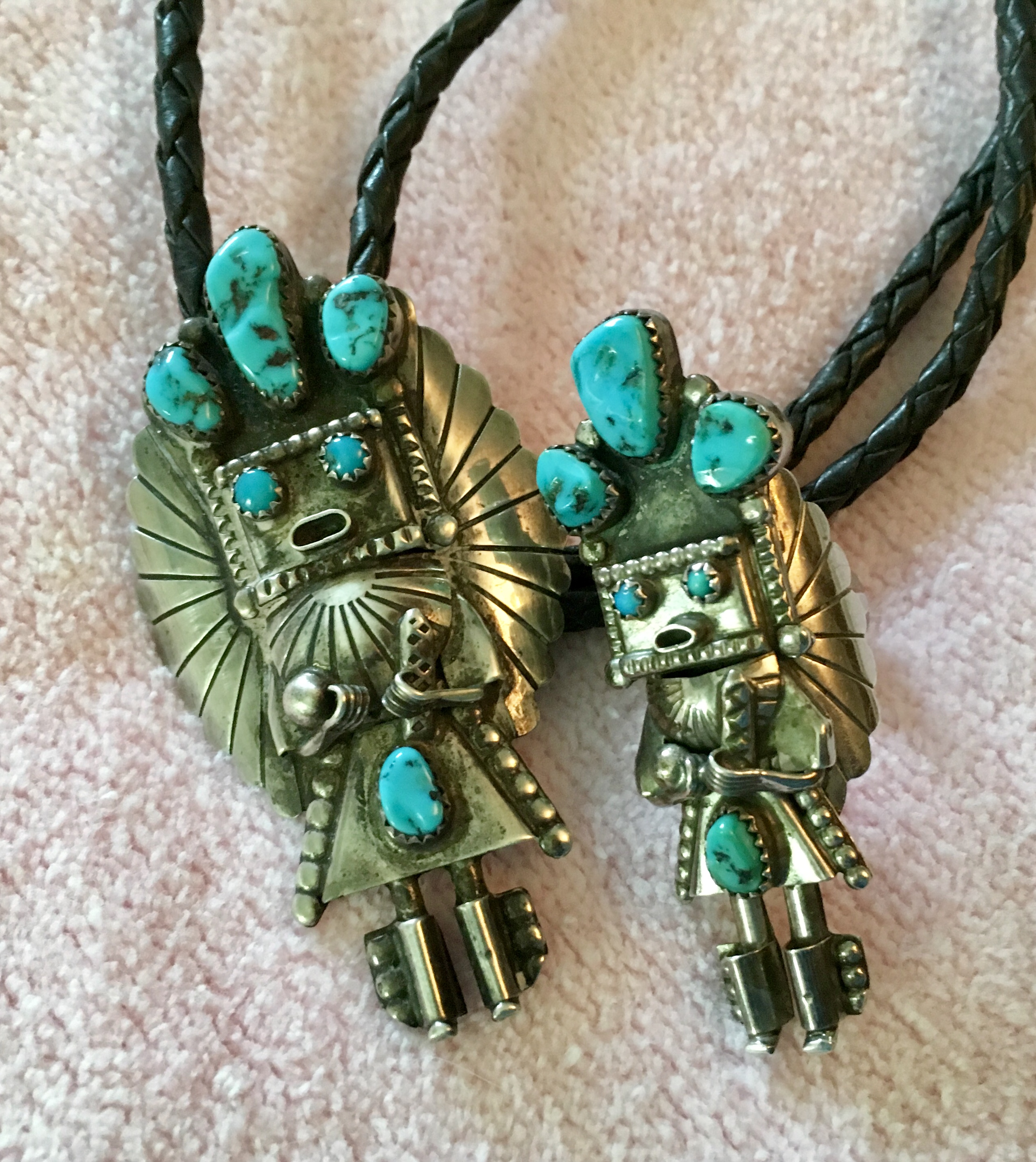 Nice combo! I would lean towards Kingman. Regarding sets it really is in the eye of the beholder. Given that Bolo’s are mostly worn by men, it would depend on the ring size. I find that the bigger the ring the more desirable a set like this becomes. If the ring is a size 11+ then I think you could get a better price as a set. Kachina are hot ticket most days, so selling them separate could also do well if the size is smaller on the ring. I don’t keep this style around long when I get them in my shop.
