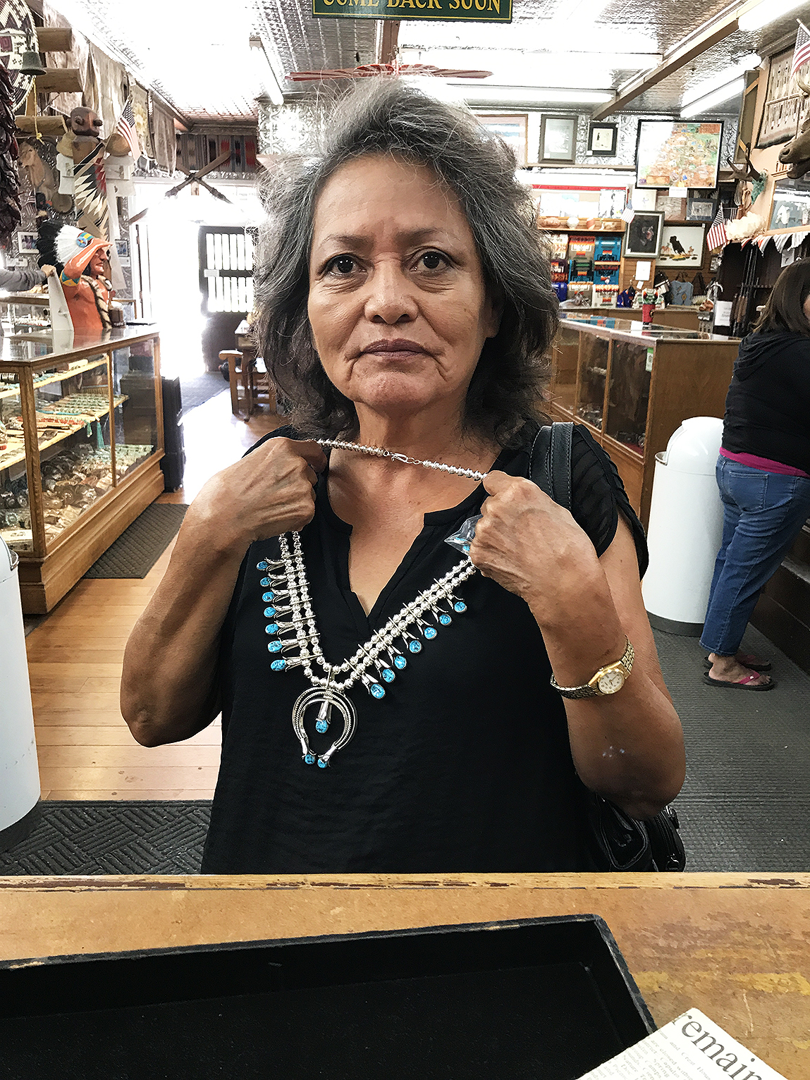Doris is a lovely lady and still making those pieces. This is a picture of her with one of her beautiful squash blossoms.