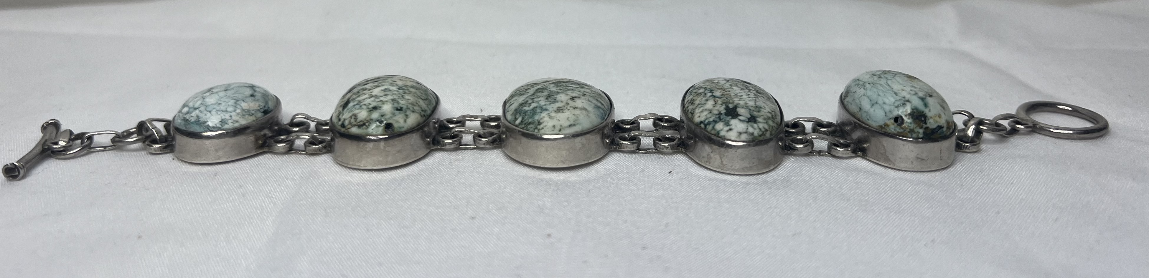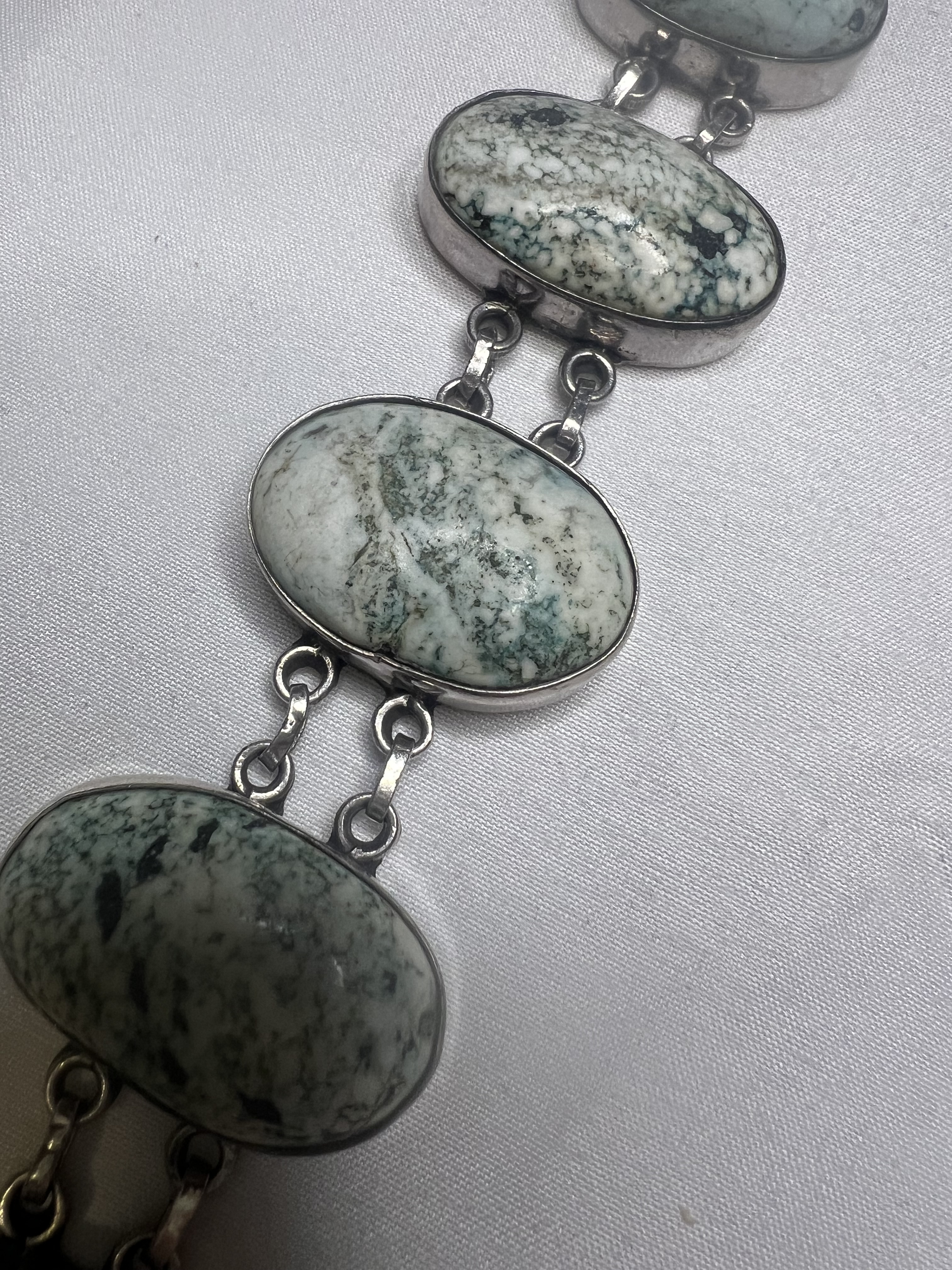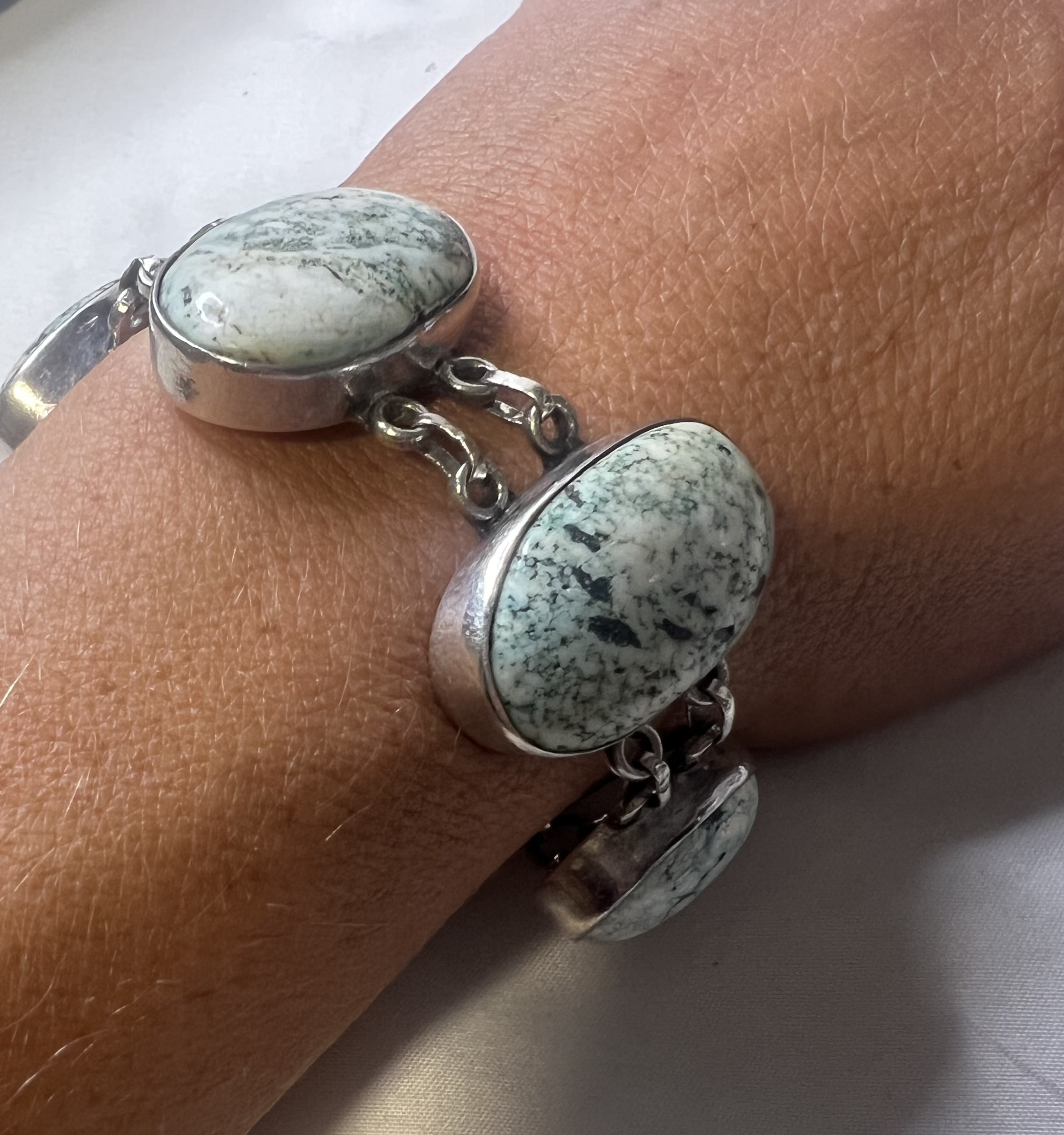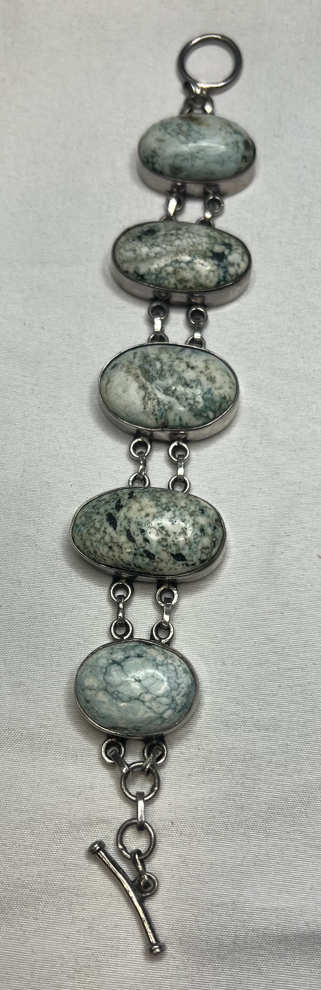 @Amandalyn Hi ~That’s a nice, contemporary bracelet. In my opinion, these cabs are not Dry Creek turquoise. They don’t look like variscite to me, either.