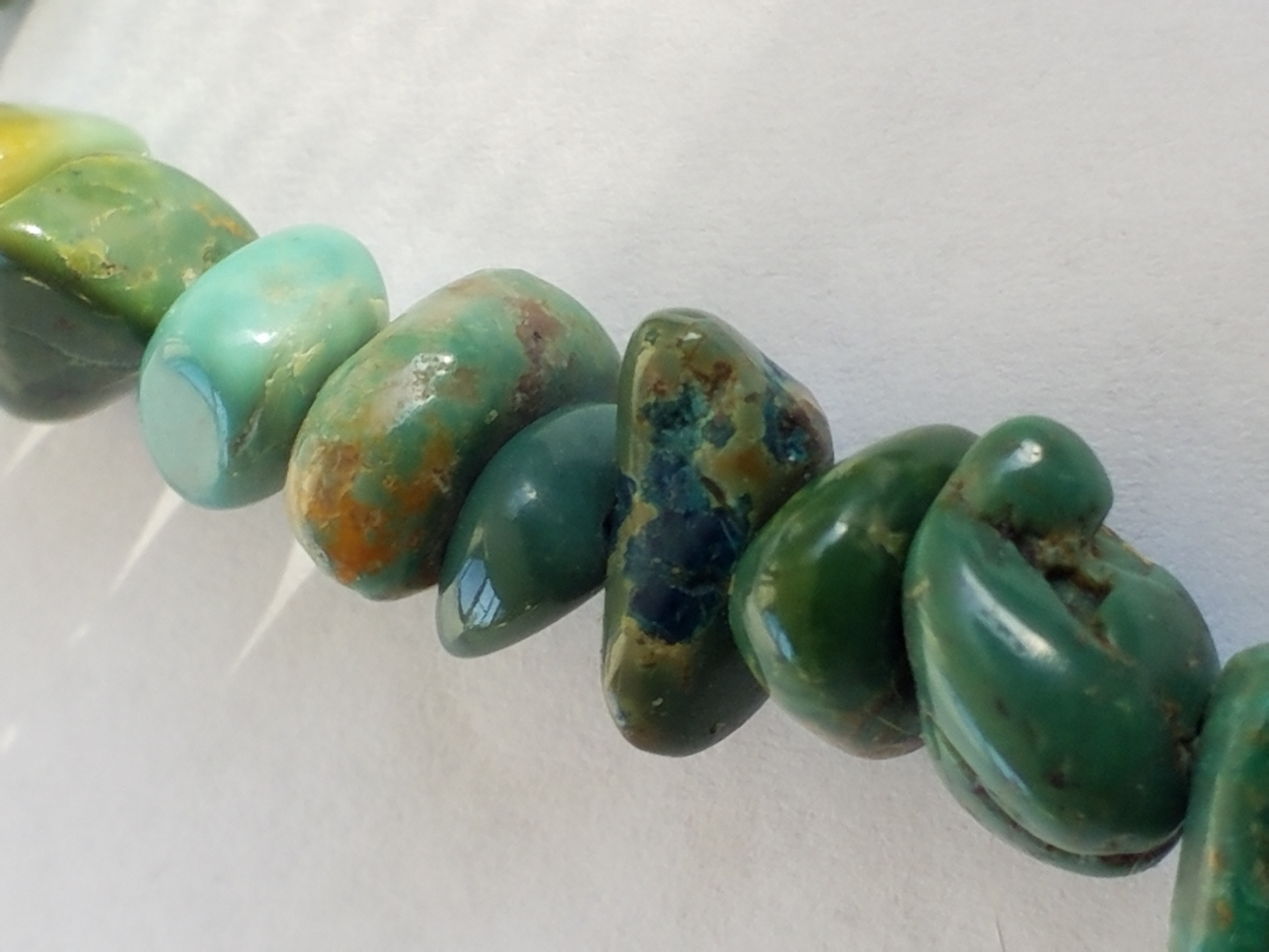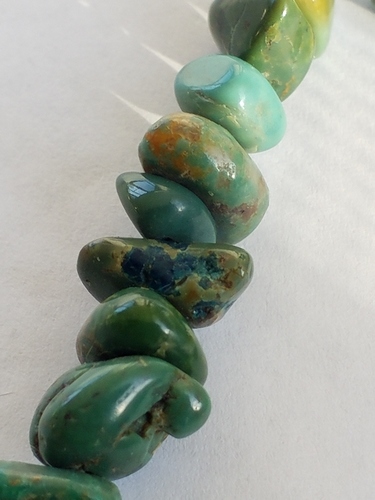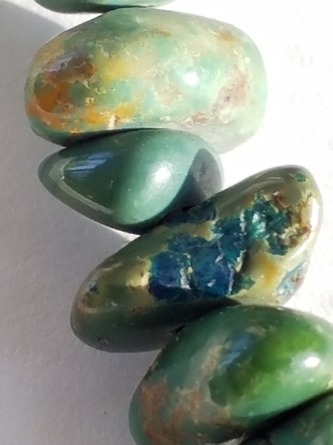 I am wondering how do you tell if turquoise is dyed? Can matrix be dark blue? I got this tumbled nugget necklace but the stones are green and I’m wondering if they are dyed. String is white, not blue. I realize I don’t know if I could even tell howlite from the real thing. Is this real turquoise? Thanks.
