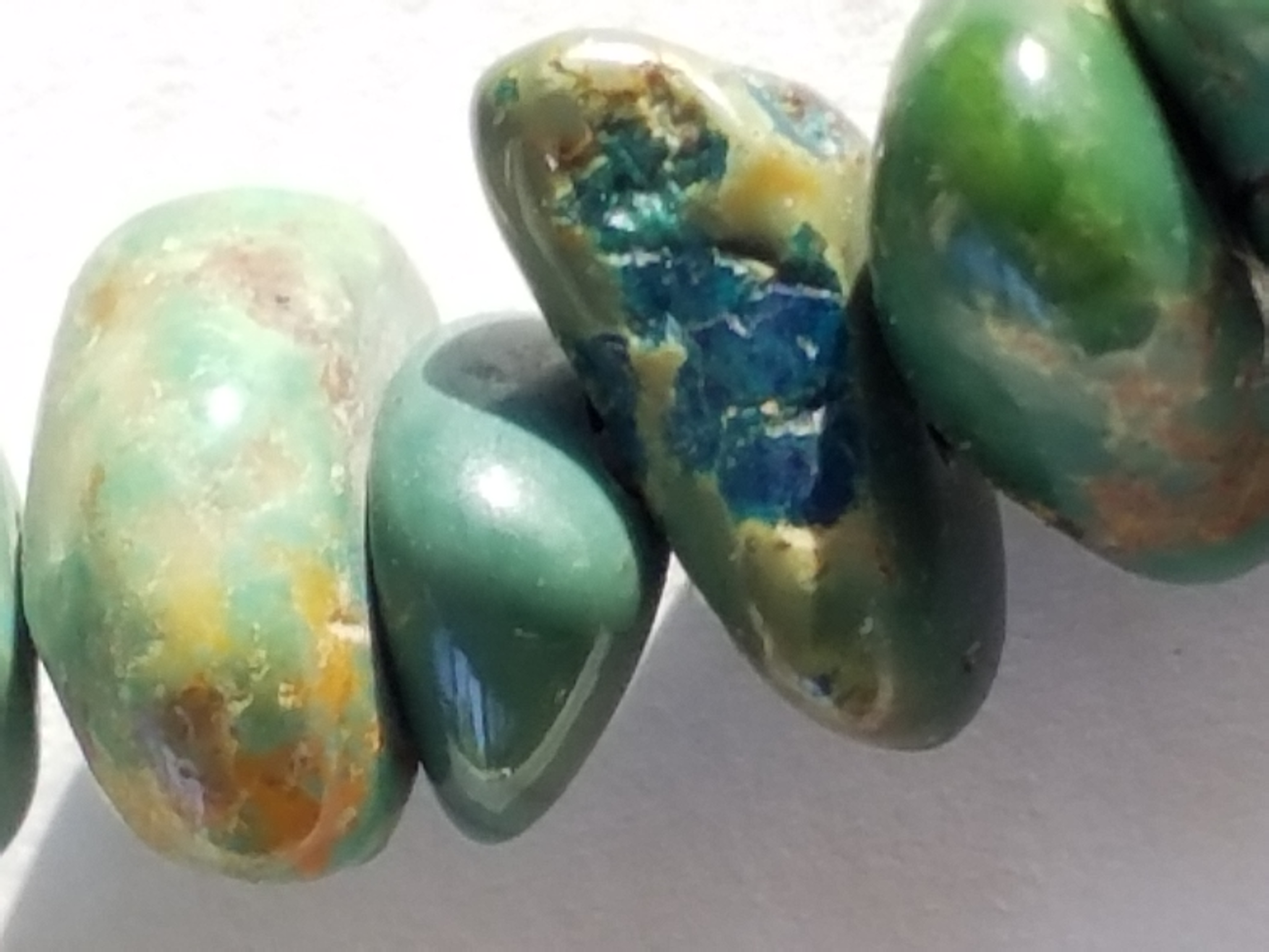 I have included a link to a google search that shows dyed turquoise. We see dyed turquoise like this all the time, the images on the google search. I can’t say I have ever seen pieces that are dyed like your image. Usually dyed pieces will have a consistency in color, because you begin with a white material. From the image your pieces look like real turquoise. Thanks for sharing.