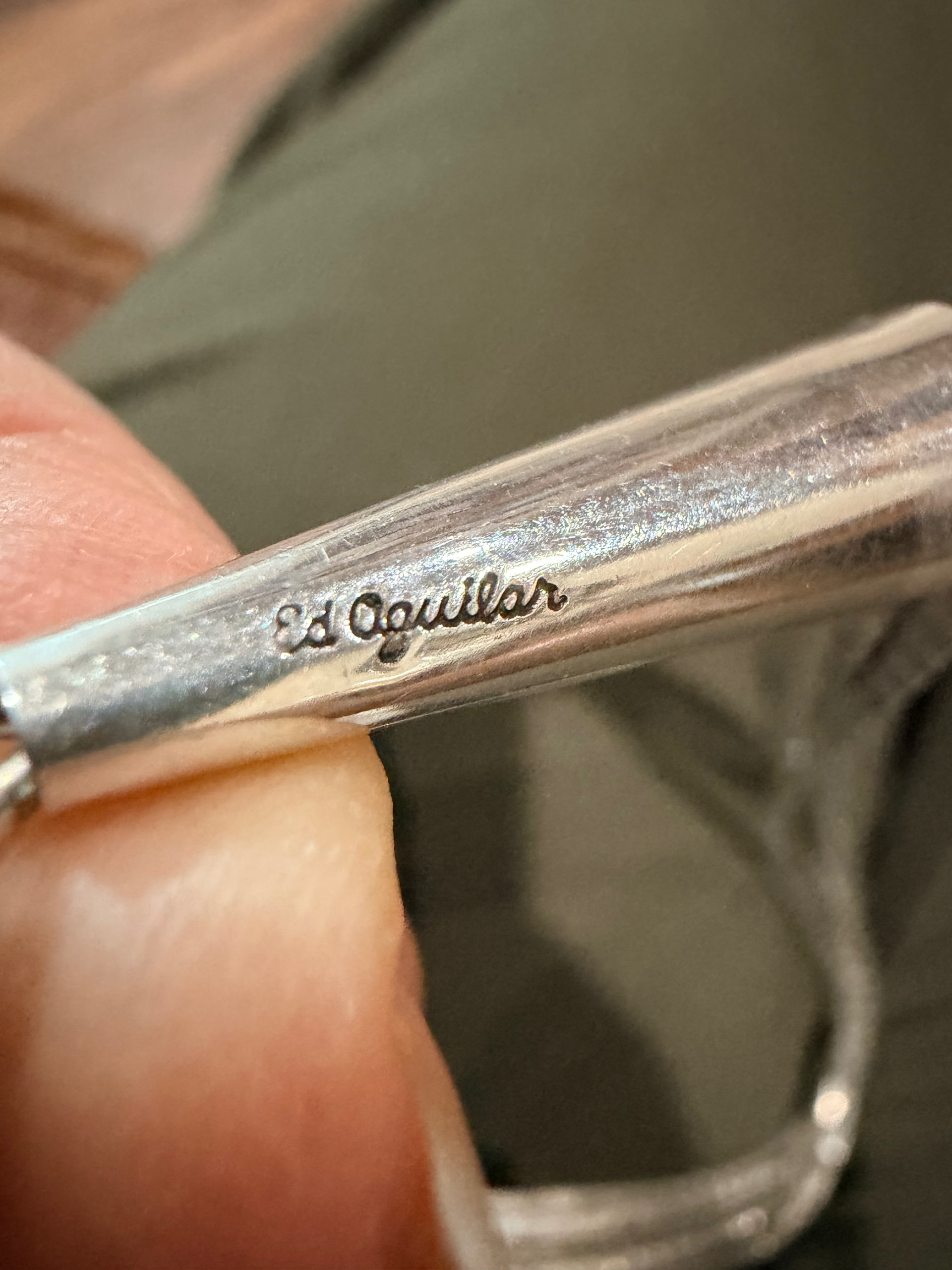 Hi everyone! I also picked up this chain where I purchased my battery bird. There was a large Taxco pendant on it. It didn’t look like Mexico jewelry to me. After further research I think it might be Ed Aguilar. Is anyone familiar with his work? Did he sign his necklaces?