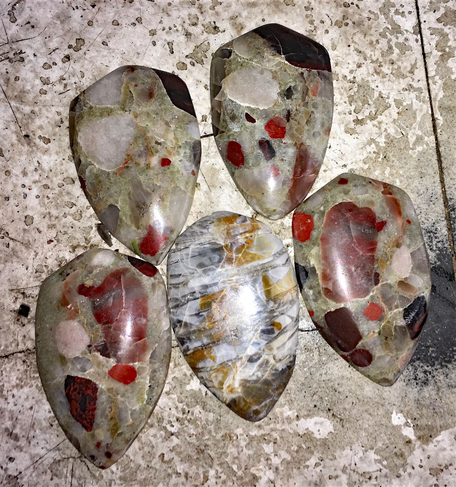 The Pudding Stone was collected by a friend. He also made the pre-form cabochons and I polished them.