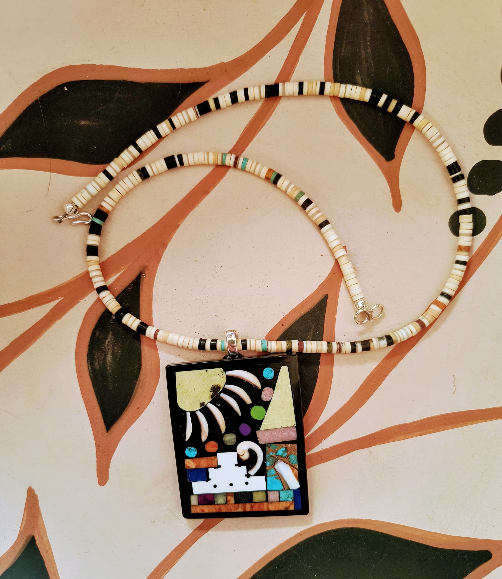 Love your new necklace! Both the uniqueness of the pendant design and the super-pretty color palette of the heishe that complements it. Glad you had a great time. Please keep reporting on all you saw and enjoyed! And did you grab a Navajo taco?
