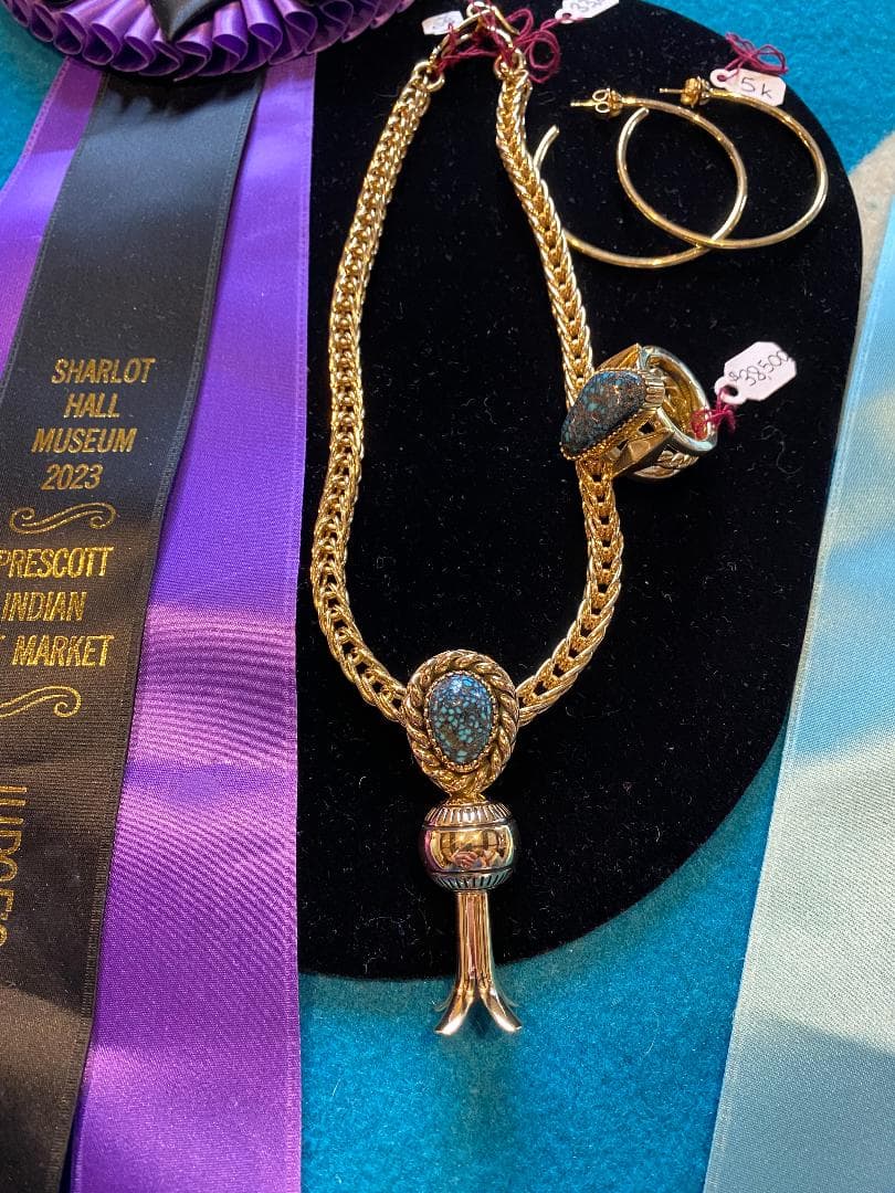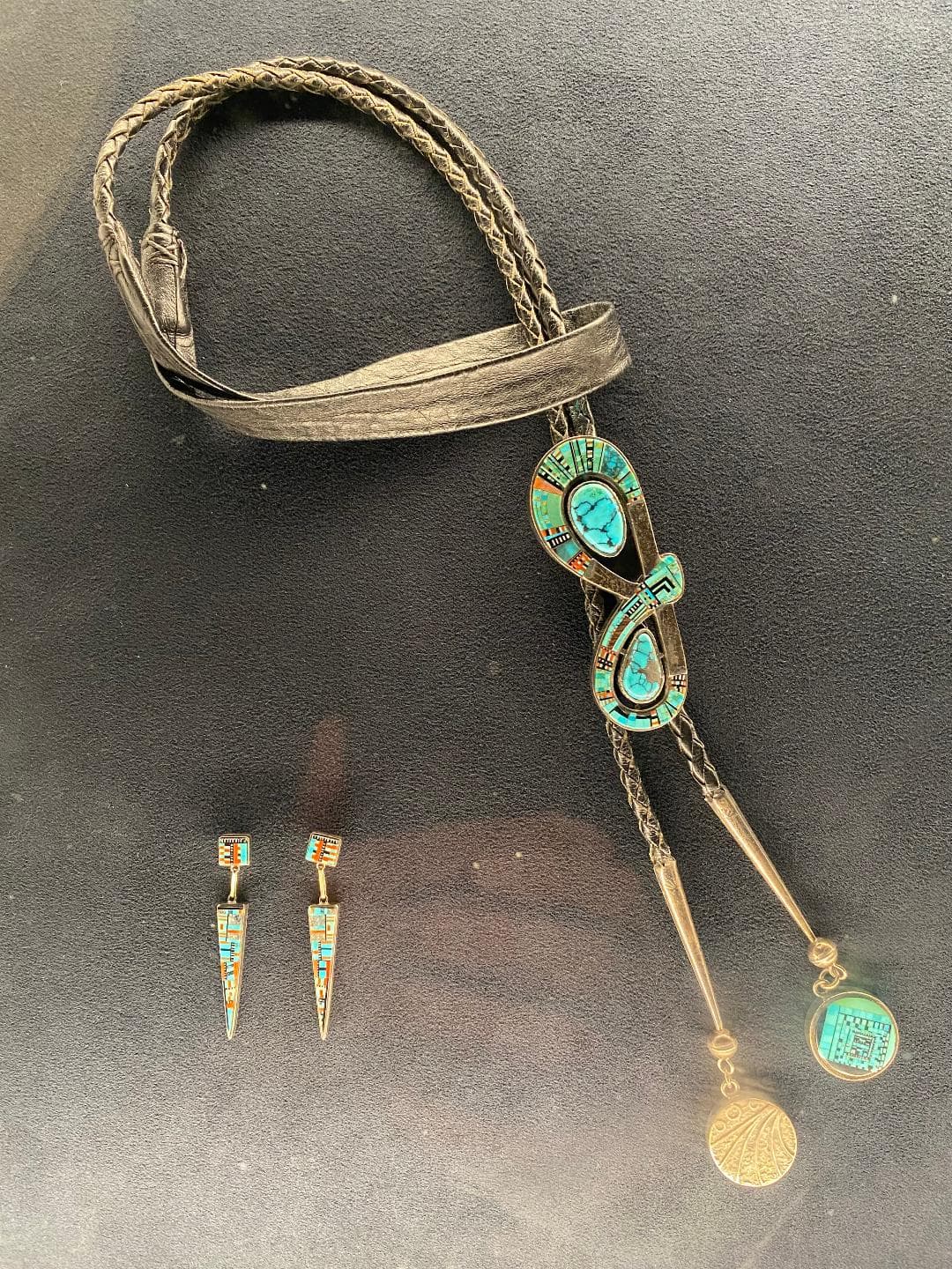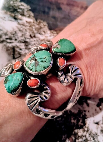 What a great story…and what nice pieces you posted. That micro inlay cuff is amazing. Which one of Ziacats famous cuffs was she wearing? @Ziacat …really like your new necklace…the colors on the pendant and necklace go together so well!