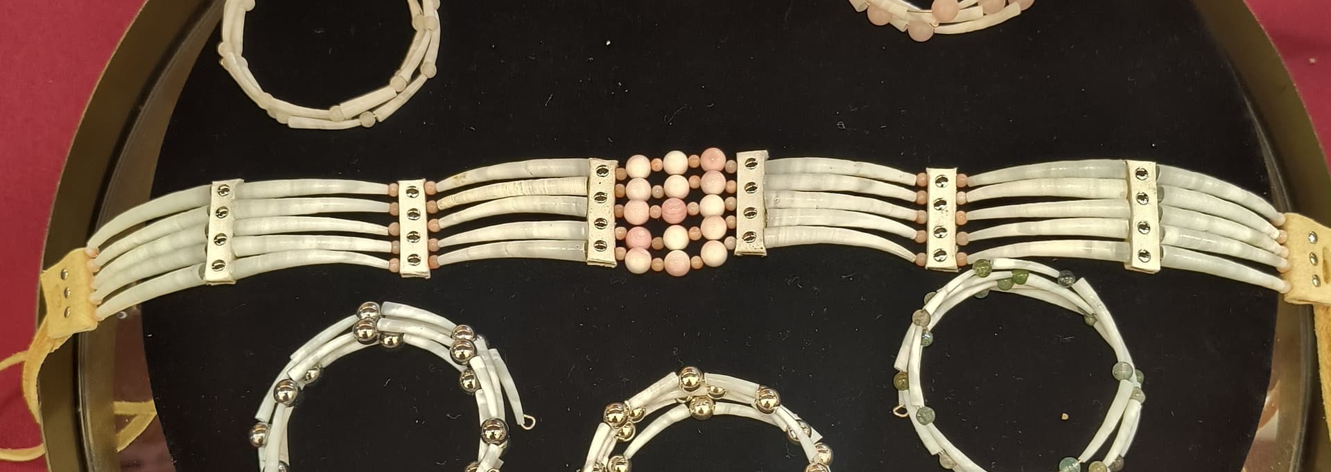 My niece went with me years ago, and bought a bone choker from the gift shop. She wore it so much it finally fell apart, so she asked me to keep an eye open for another. A Oglala Sioux gentleman who goes by Quill Bill (Bill Mendoza) had one, so I picked that up for her. I think @OrbitOrange bought something from him awhile back. This pic was from his display.