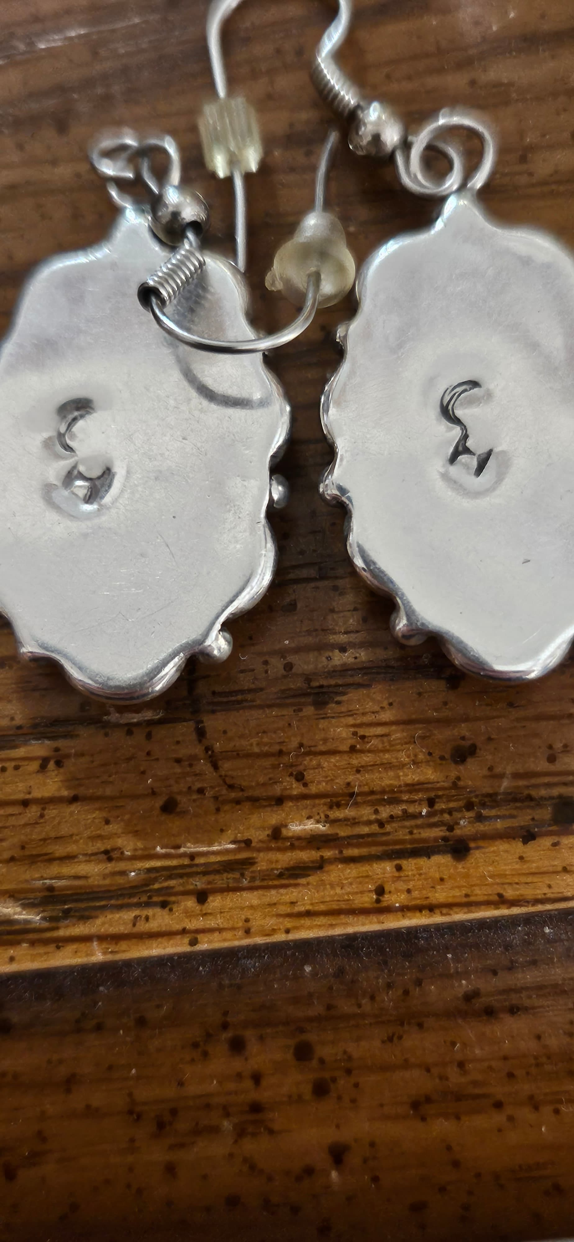I’ve had these earrings for a while, the person I bought them from said she acquired some old turquoise that was put in these newly created earrings. The hallmark, looks like a stacked C and H, is on the Amerindien list of unknowns.