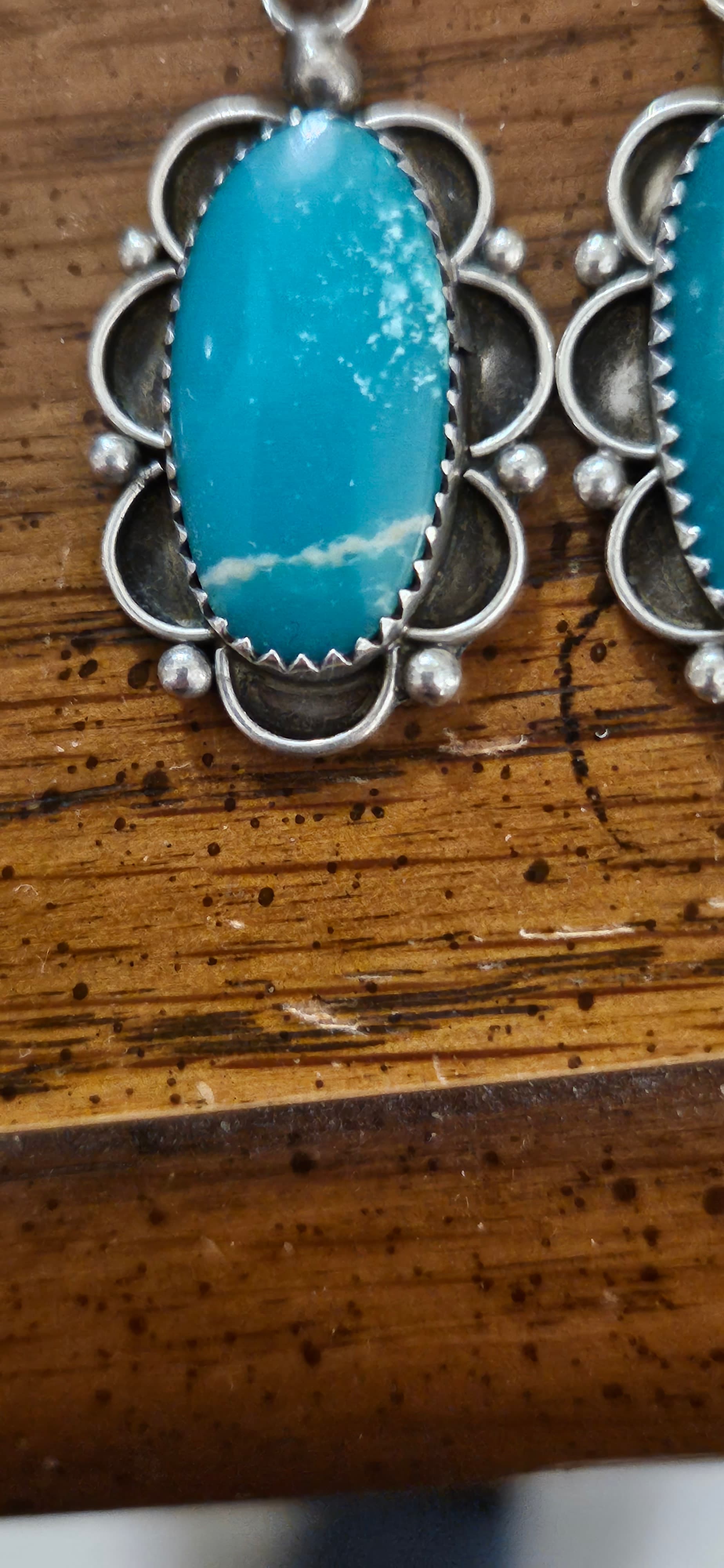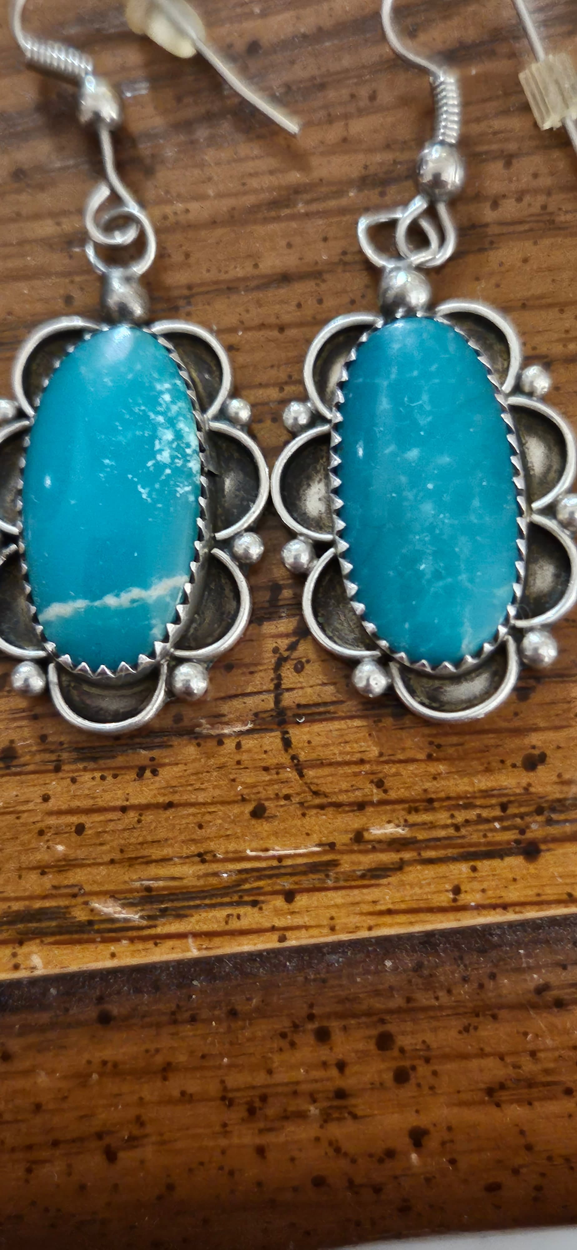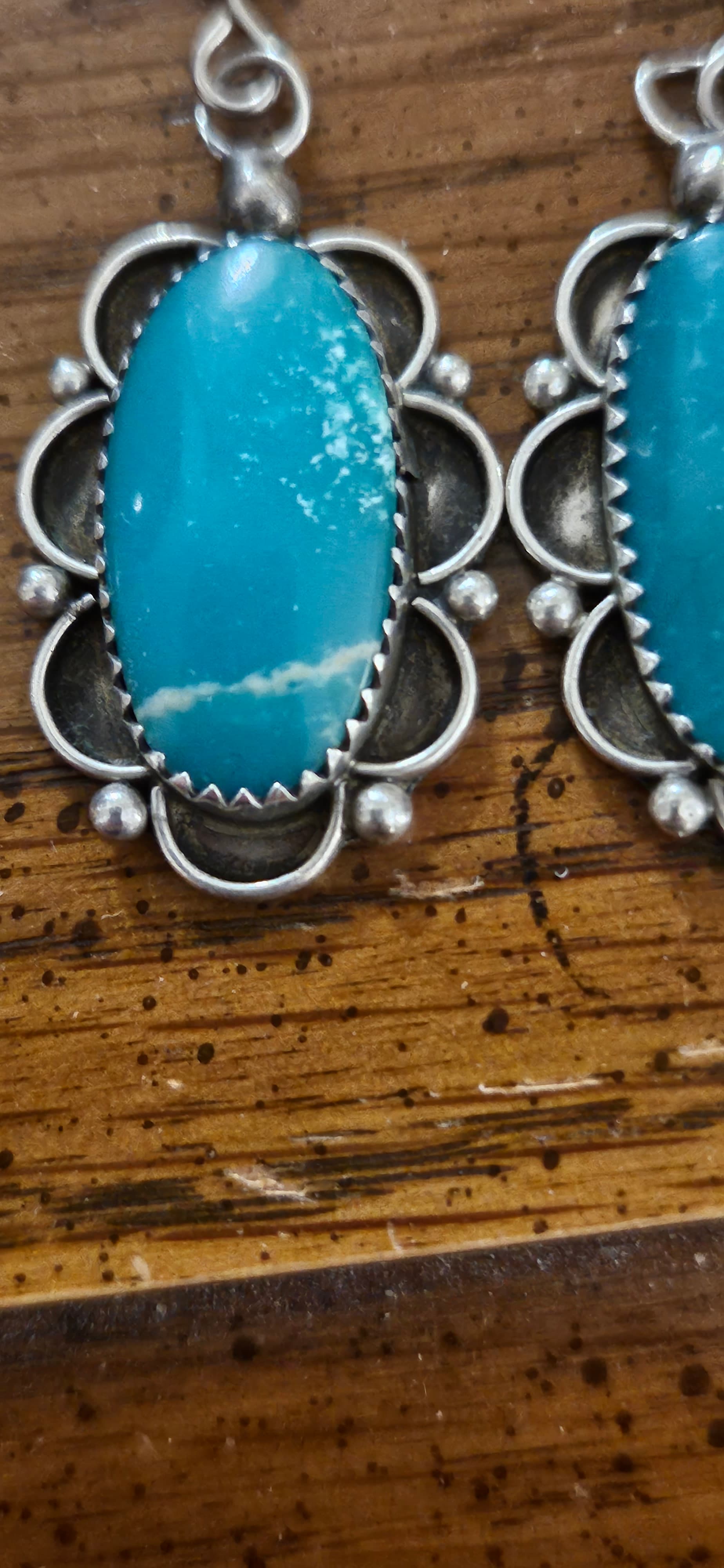 @tepowell Nice earrings. Looking at the earring on the right, it makes me wonder if this could be what’s named “White Water” Turquoise which is from the Campitos mine in Mexico. The water webbing, as mentioned by @Ziacat, is what caught my eye.