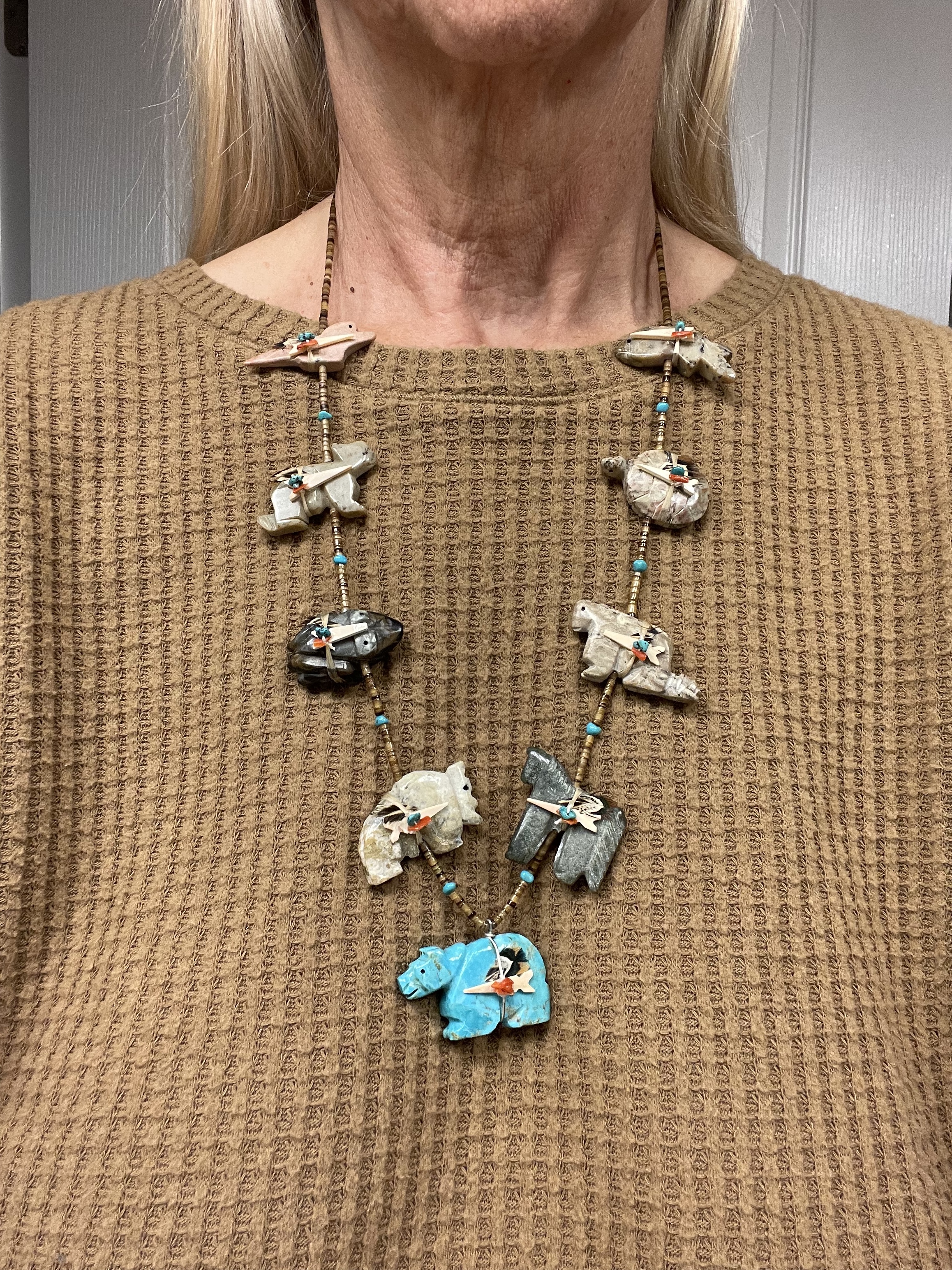 Beautiful!! Love the fetishes…the colors and different stones are amazing!