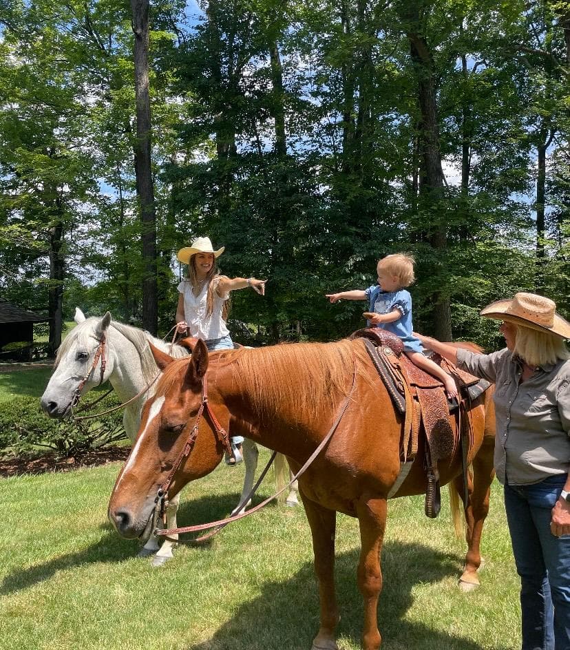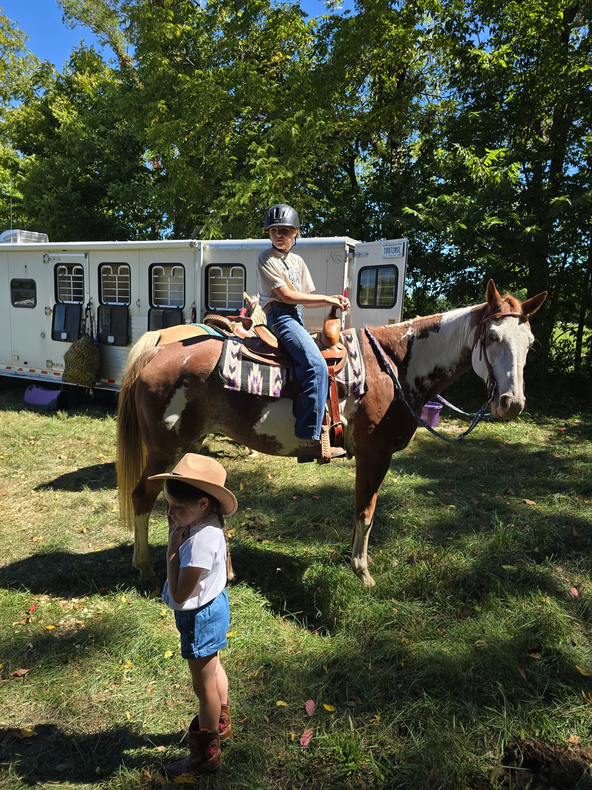 We start’em young too. Our children were trail riding their own horse at age 5. Here is my 21 month old niece and daughter sharing a cowgirl moment. ![]()