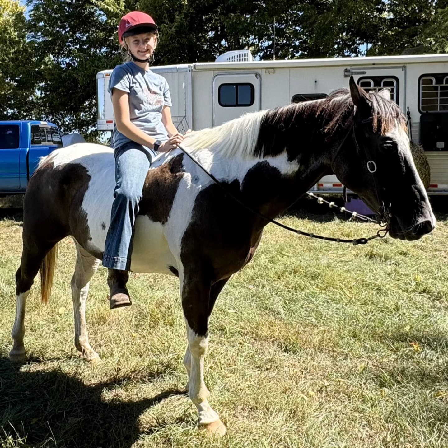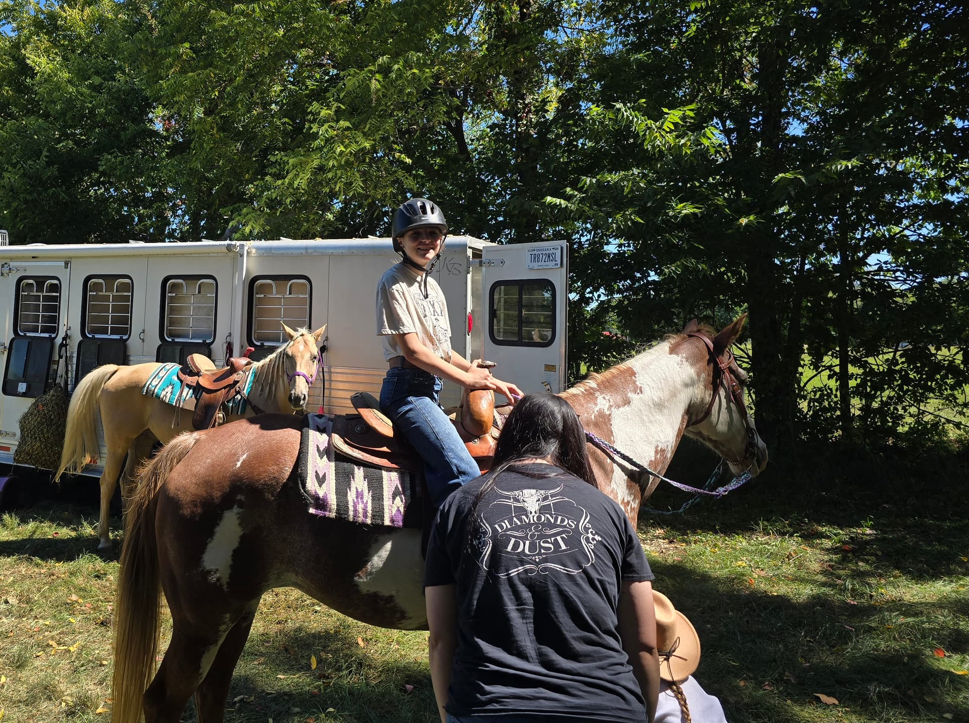 The Palomino hitched at the trailer in the first photo is Lakota, he gets a bit buddy sour when he’s separated from Lainey, the dark Paint mare you pointed out.![]()