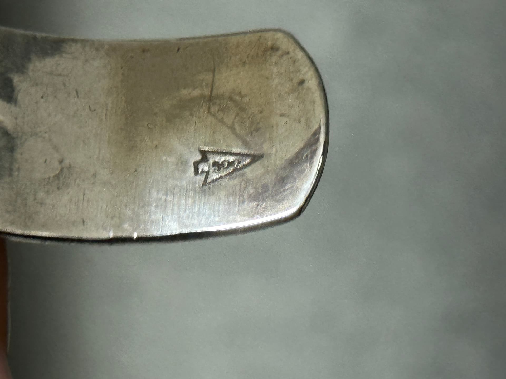 So in the copy it says the company used coin silver. The question I’m thinking then, with this piece, is… is it original or is it a reproduction? It’s shiny because @EatSleepTurquoise polished it, but it still looks newish to me, meaning I don’t see signs of wear on it. Maybe it just wasn’t worn much.