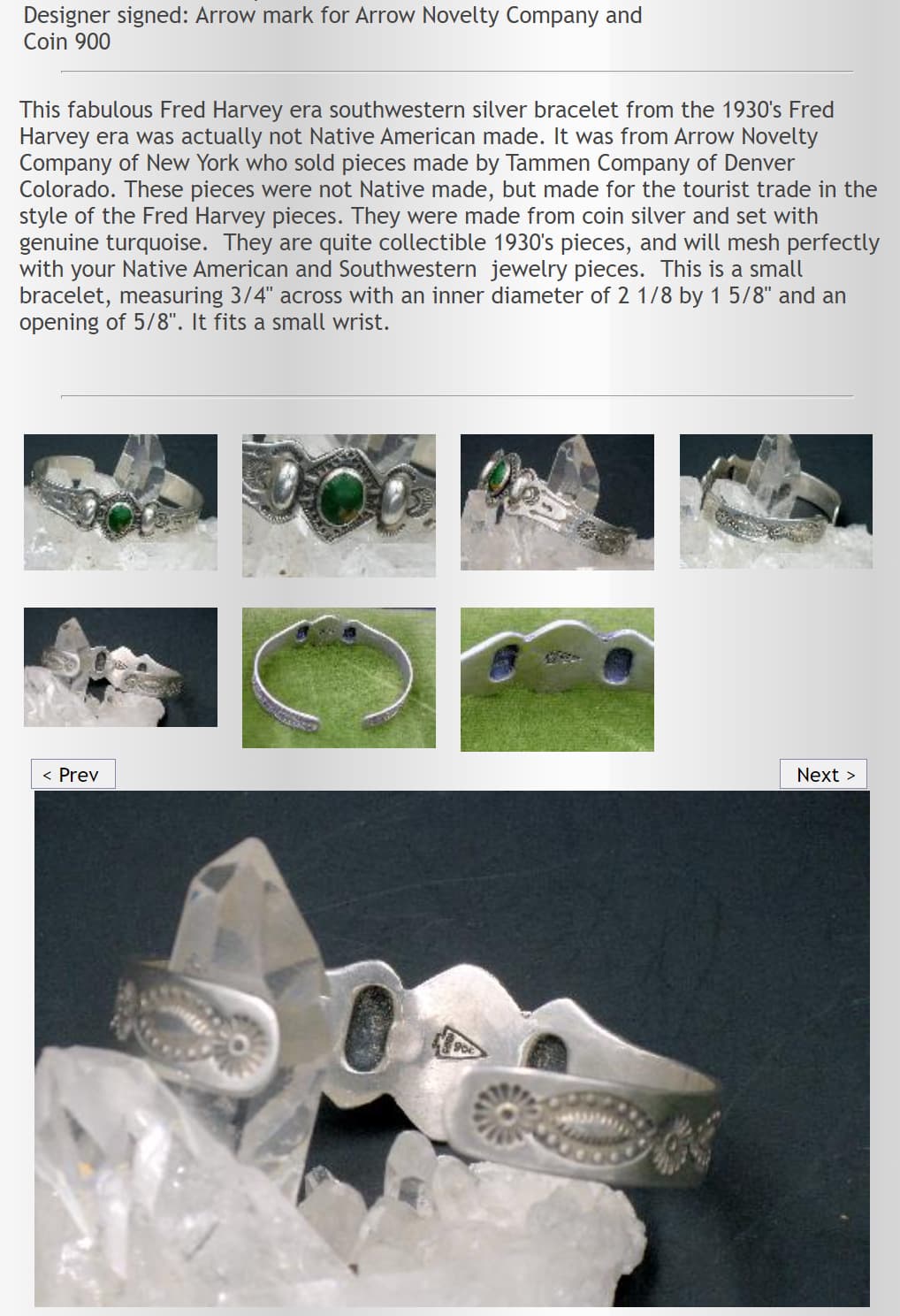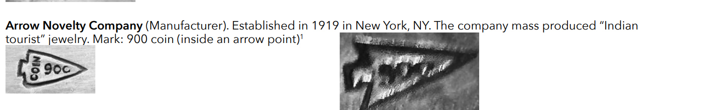 The discussion is referring to Fred Harvey type jewelry not Arrow Novelty Company, but still similar topic. Shows how difficult it is to figure these things out.