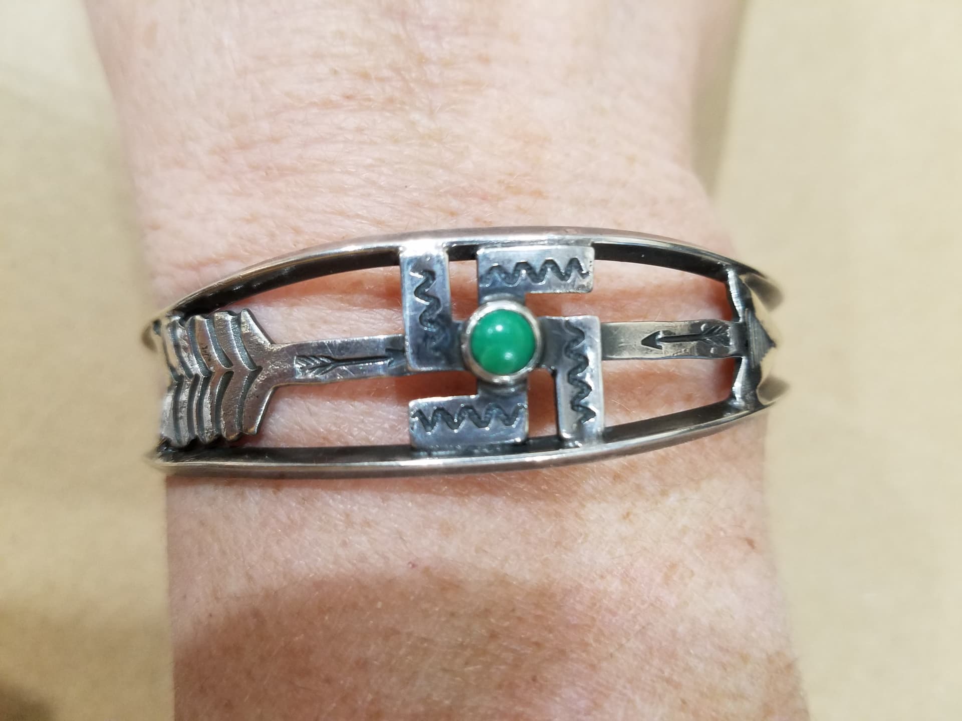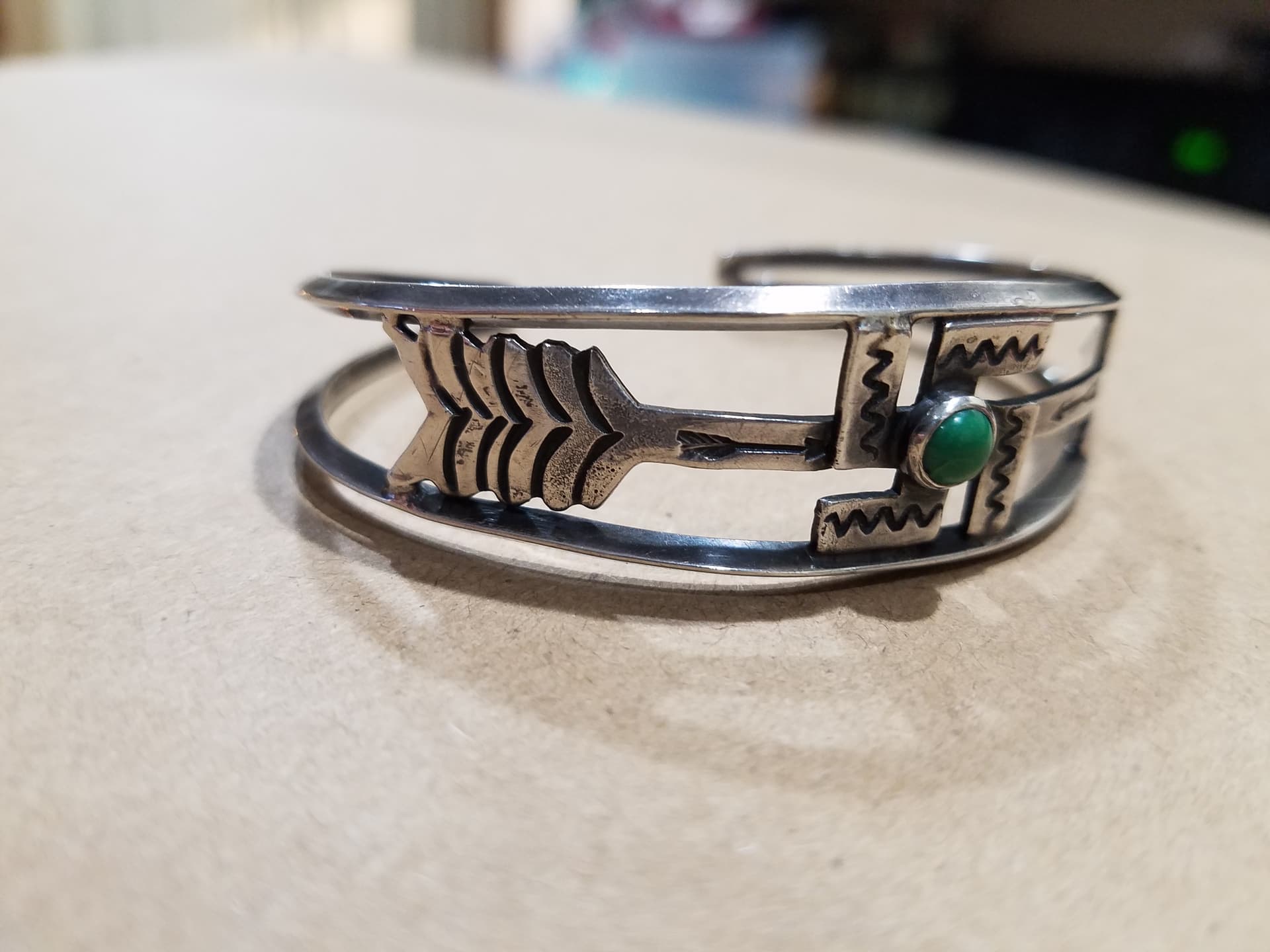 A friend of mine has this bracelet and we’ve been debating whether it is truly Fred Harvey era or possibly a reproduction. I don’t own any Fred Harvey pieces so I’m no expert. But because they were tourist pieces, they may not have been the best quality??? If anyone cares to help settle our bet, I’d really appreciate it. An Impossible Burger is on the line here! Lol Thanks everyone!