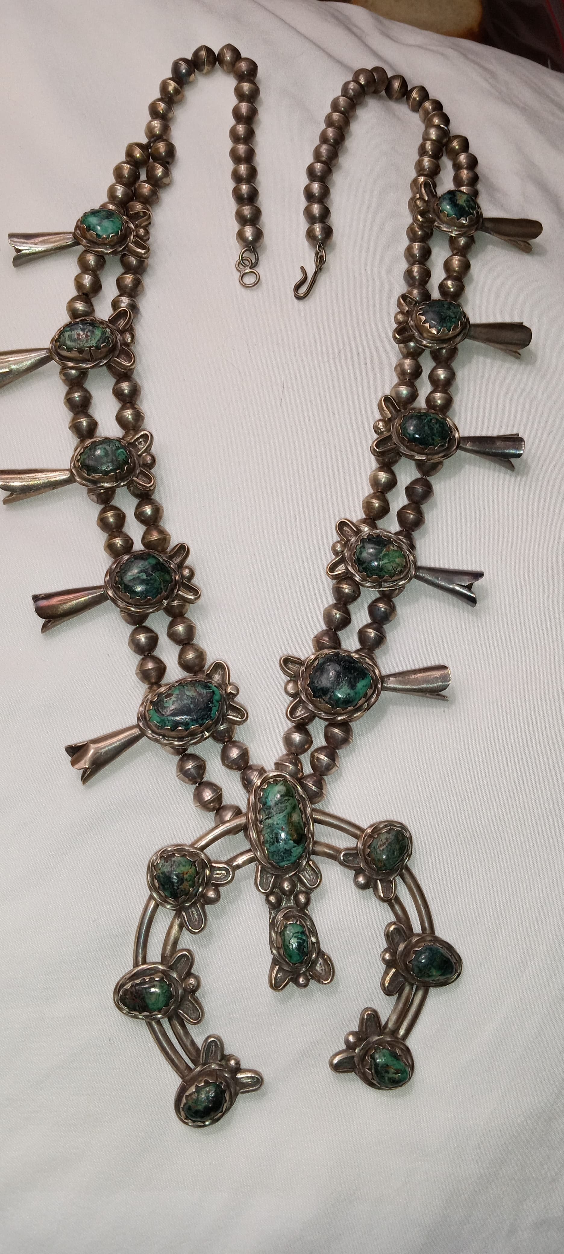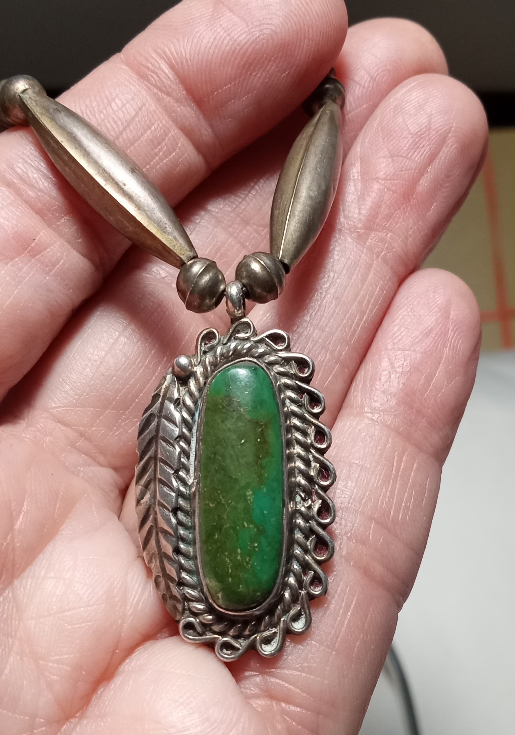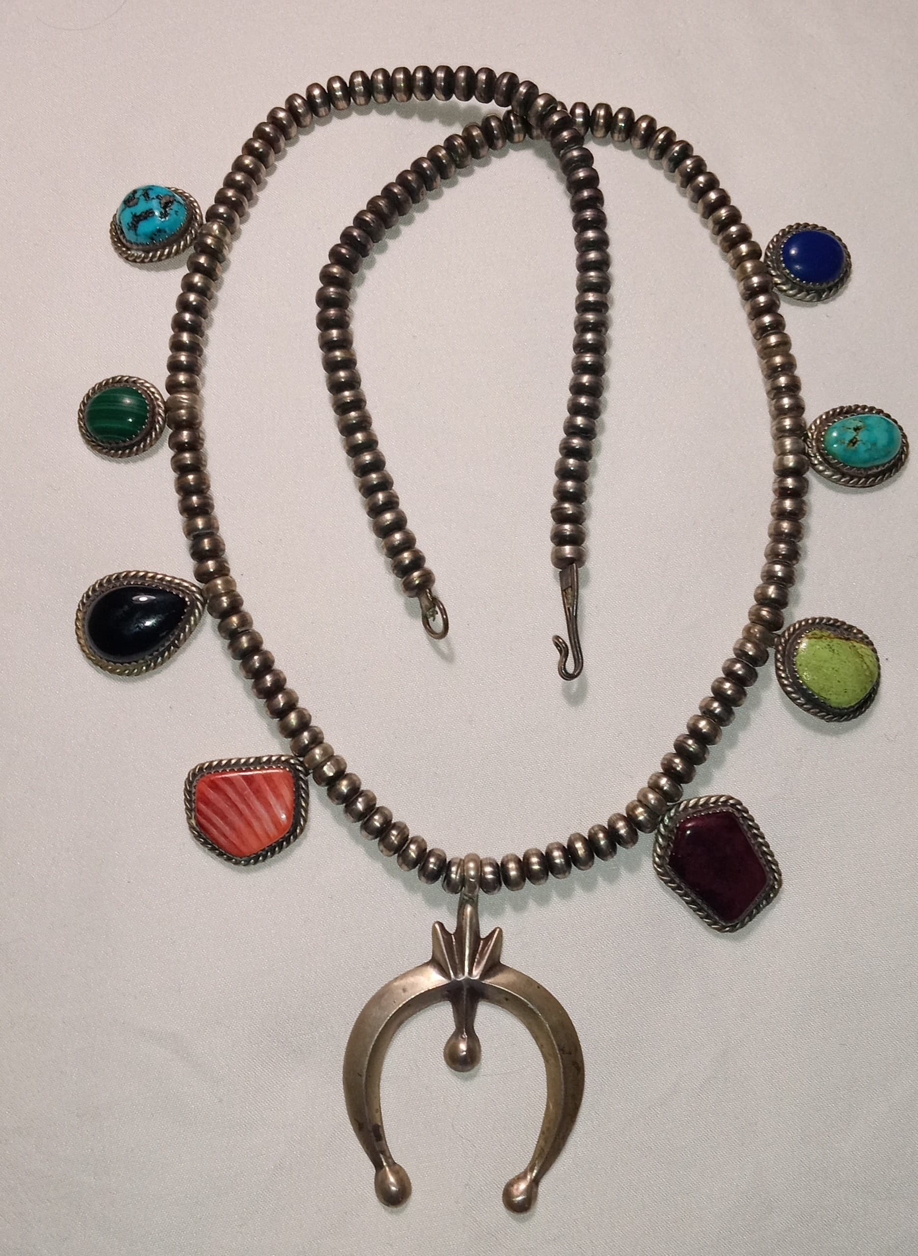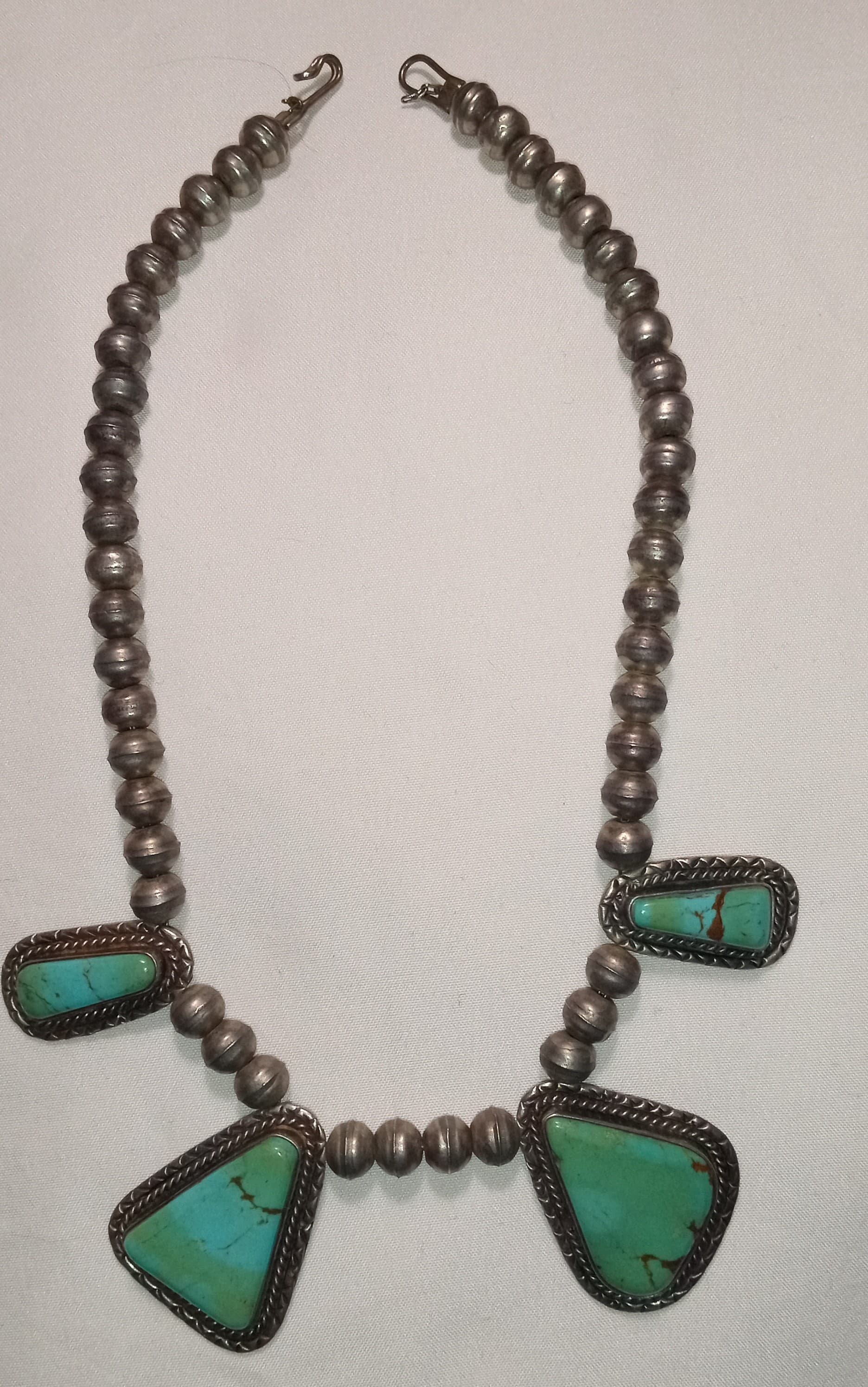 @Stracci That’s a nice gift to receive. A part of me wants to say that the silver beads are handmade. Stamped .925/sterling? I’m not convinced it’s turquoise, either, but have not even a guess as to what the stones could be.