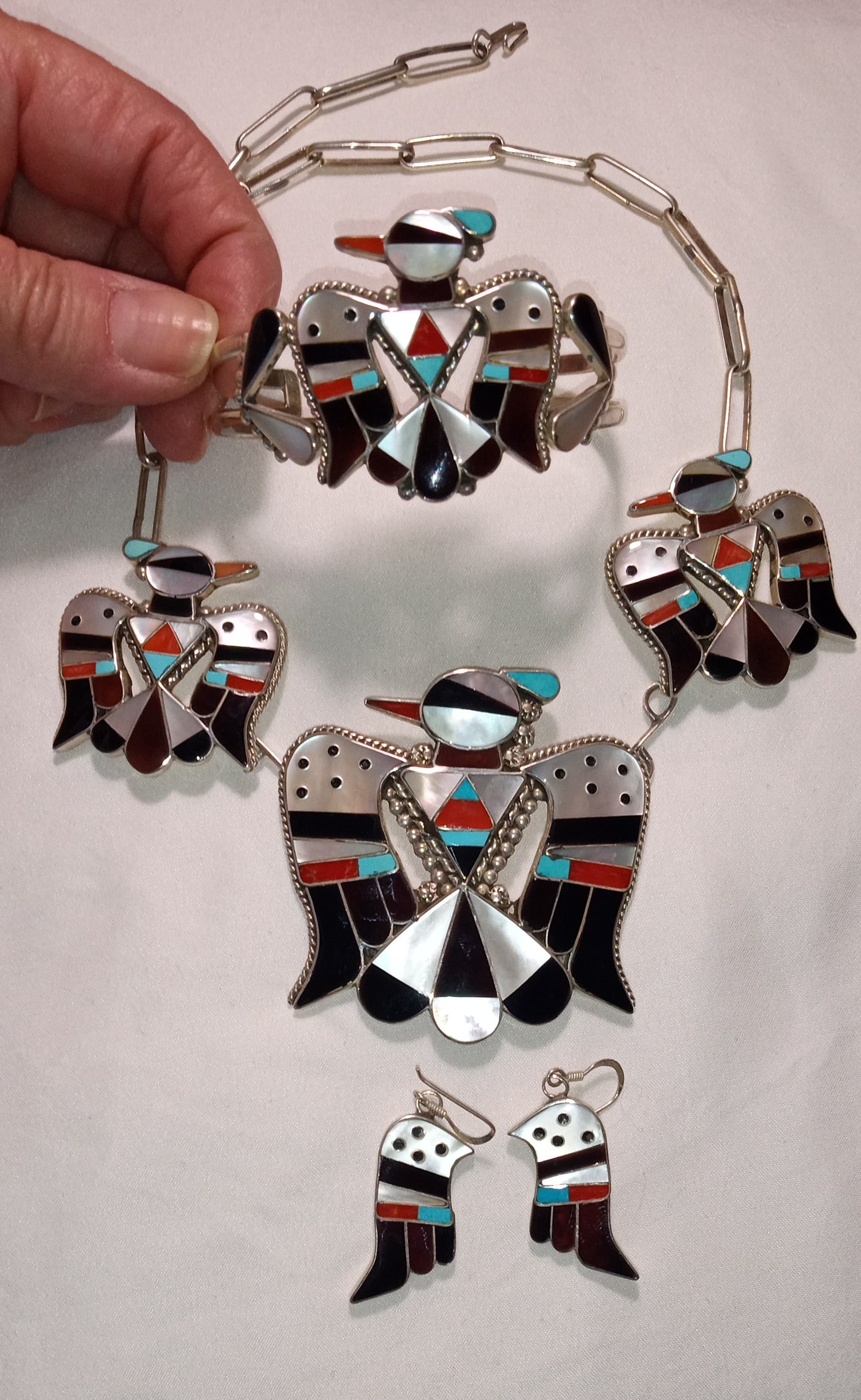 I have to head out so I don’t have time to look too closely now, but I knew right away that your thunderbirds were by Bobby and Corraine Shack. I love their stuff, and I have a hummingbird ring by them.