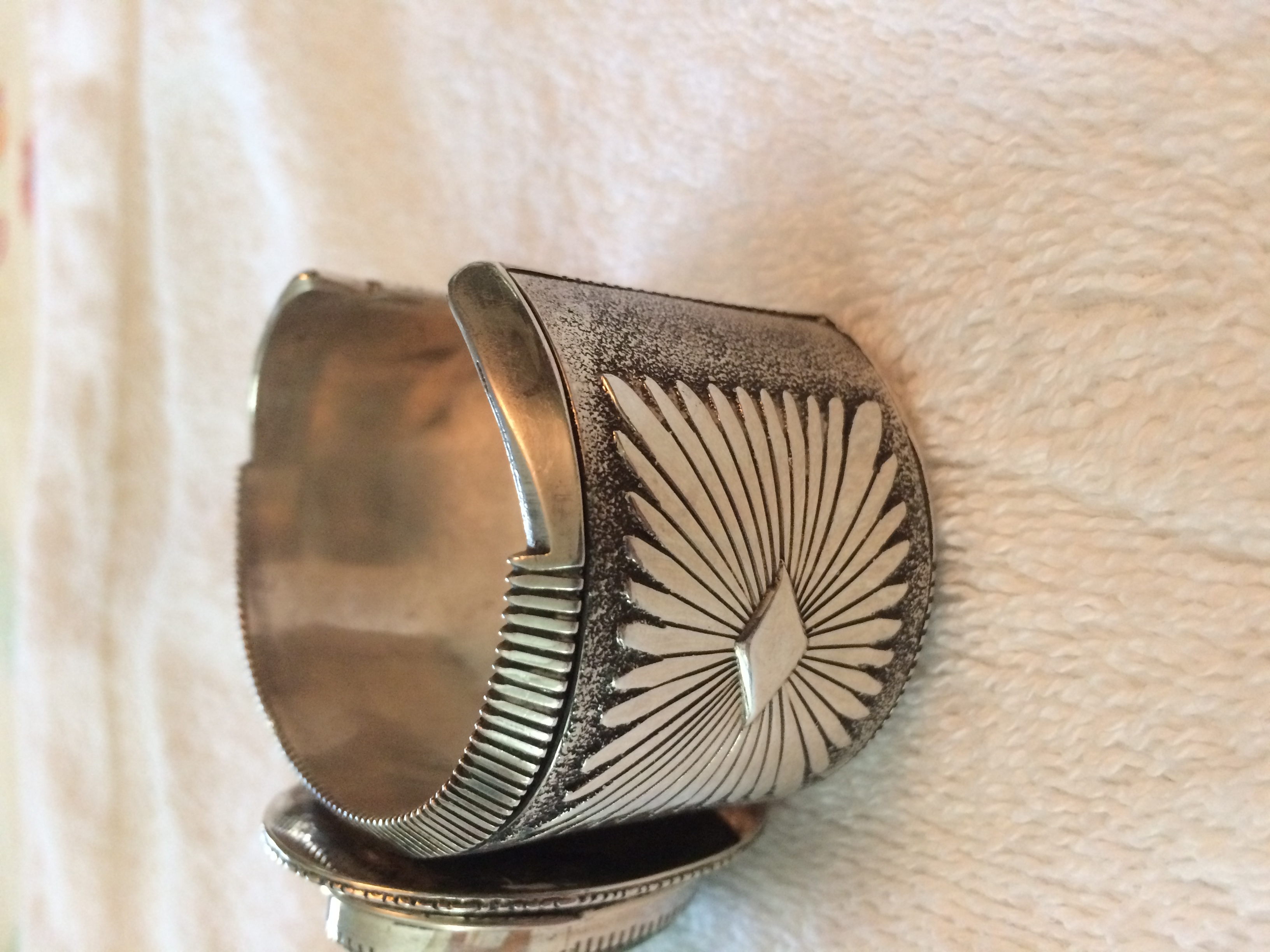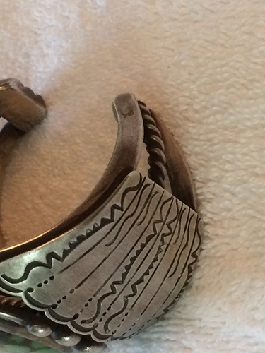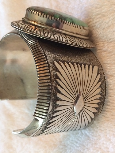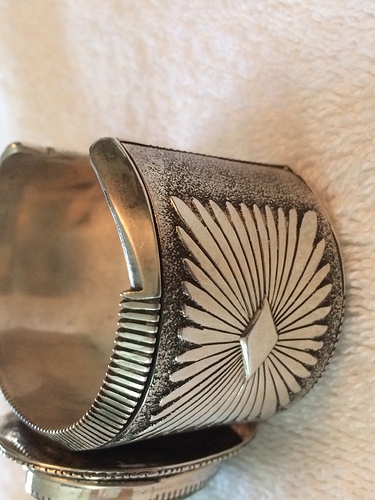 I also saw one cuff by Ric Charlie at Faust Gallery that was not at detailed but had a similar look. One of his hallmarks was a C. Can anyone shed some light on this?