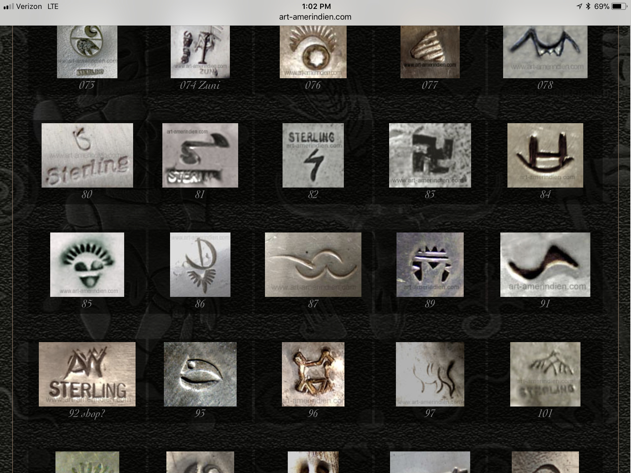 Was the hallmark I added to this post Fred Thompson’s? Do you know of anyone who uses a similar one? I am attaching a screen shot of unidentified pictographs. Would you please check out #91 and tell me what you think? They have Fred Thompson listed under the Navajo so are there two marks?