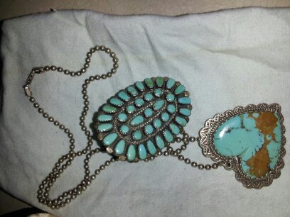 My mother was given 2 rings and necklace. The markings on the back of necklace are nothing we have ever seen. We would like to know more about these pieces of jewelry. The ring that is pictured by itself has only a J on the back. All she knows is it was made in arizona. Thank you!