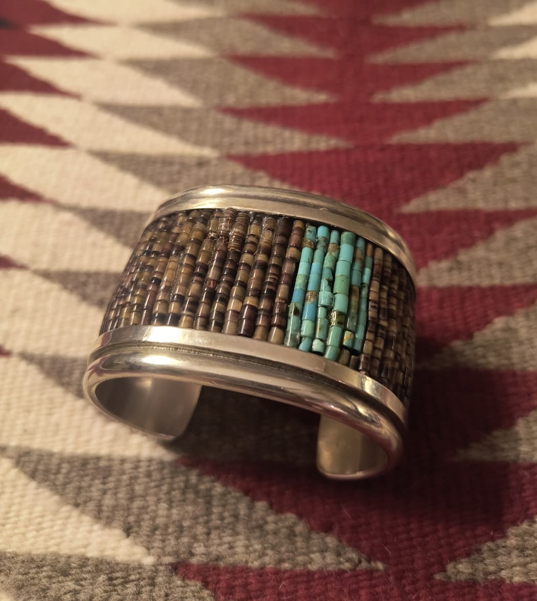 I’ve always thought these heishi cuffs were interesting; yours is especially nice! As I recall, several known artists made them (can’t recall who), and probably several unknown artists. Is yours signed?