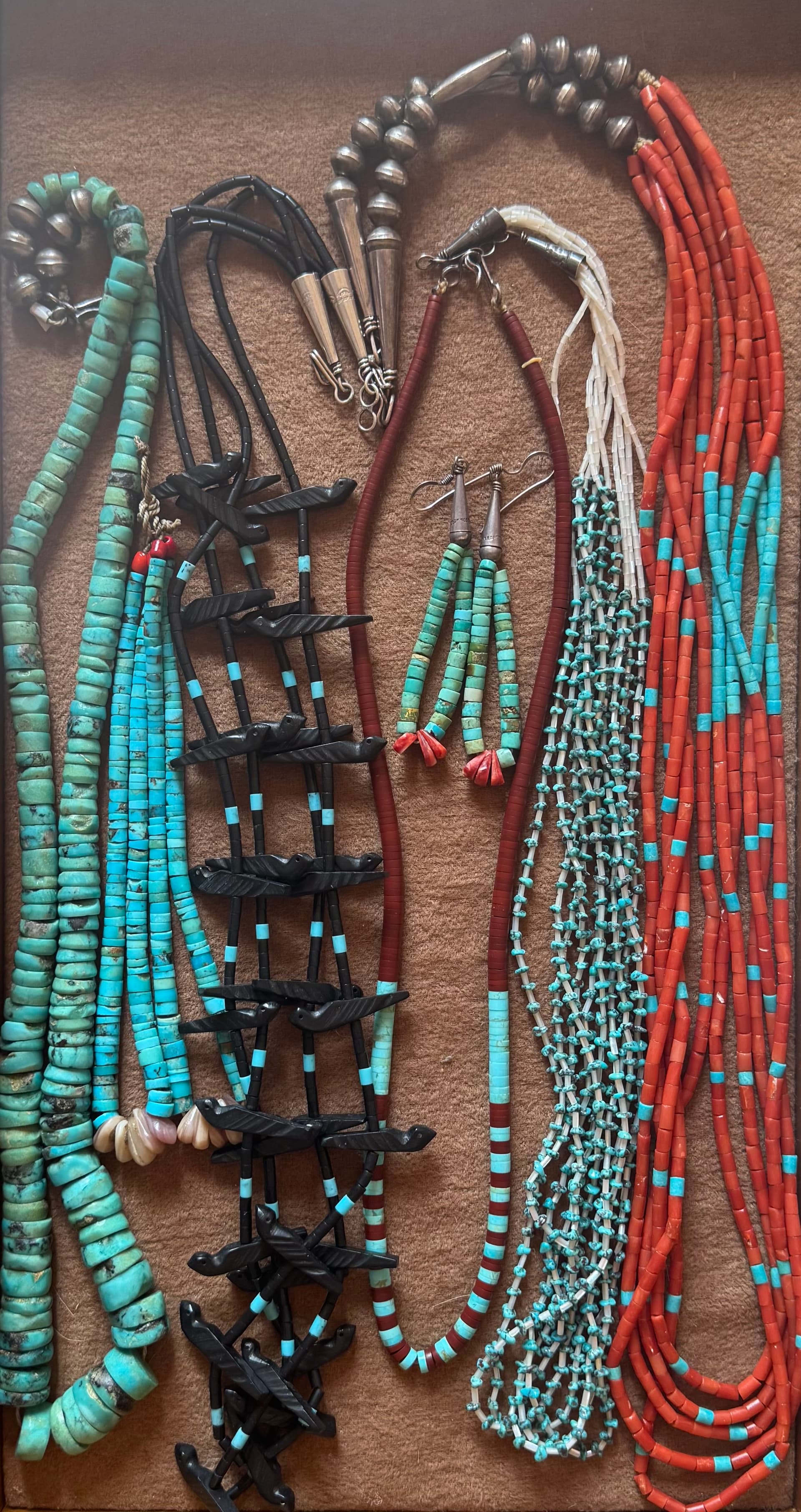 - The necklace and joclas on the left - I’m not sure if they are Pueblo made or Navajo.