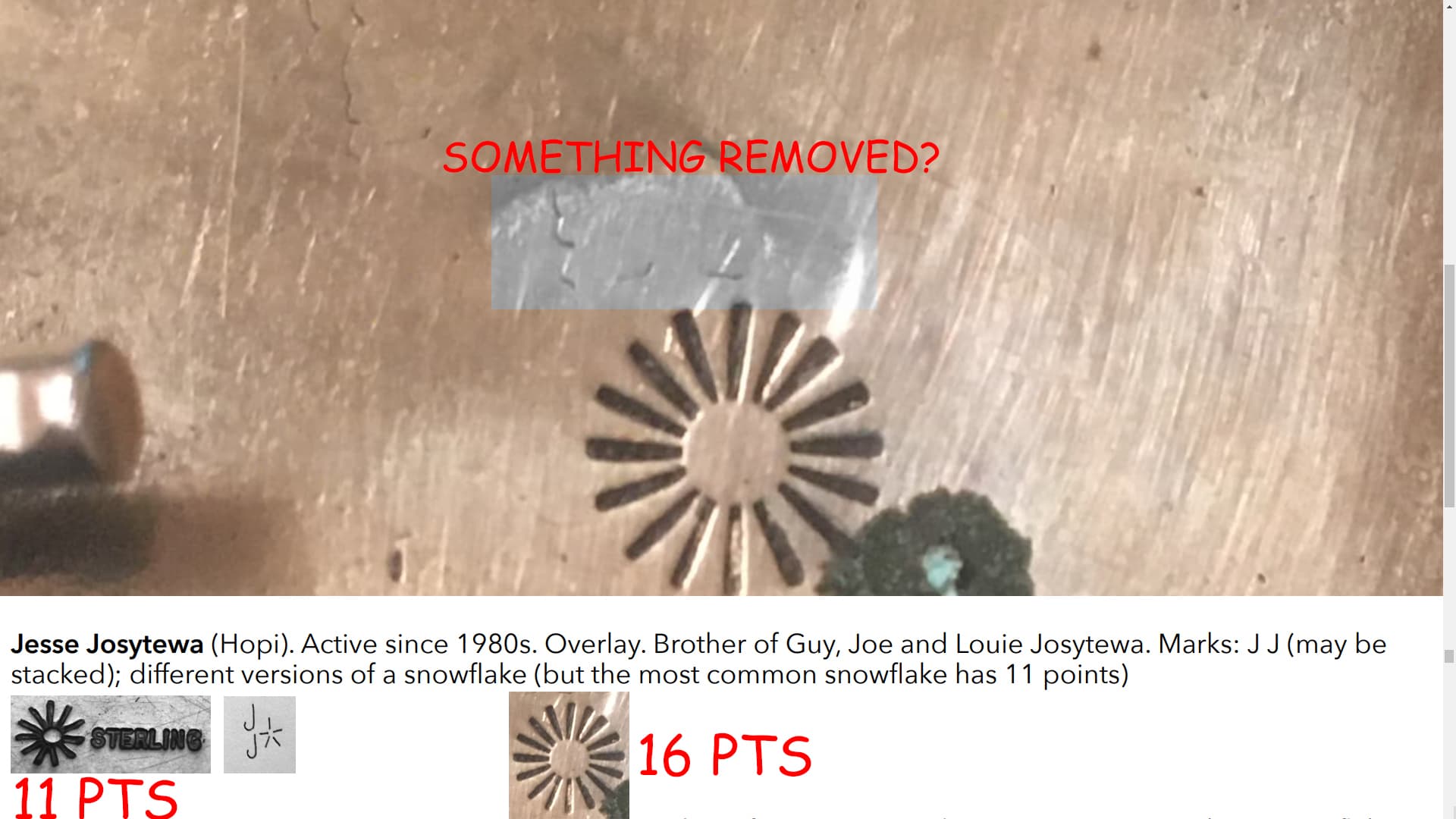 And Jesse Jostewa is Hopi; this buckle appears to be Navajo. And like Steve showed, different # of lines. So I also think it looks like the unidentified mark.
