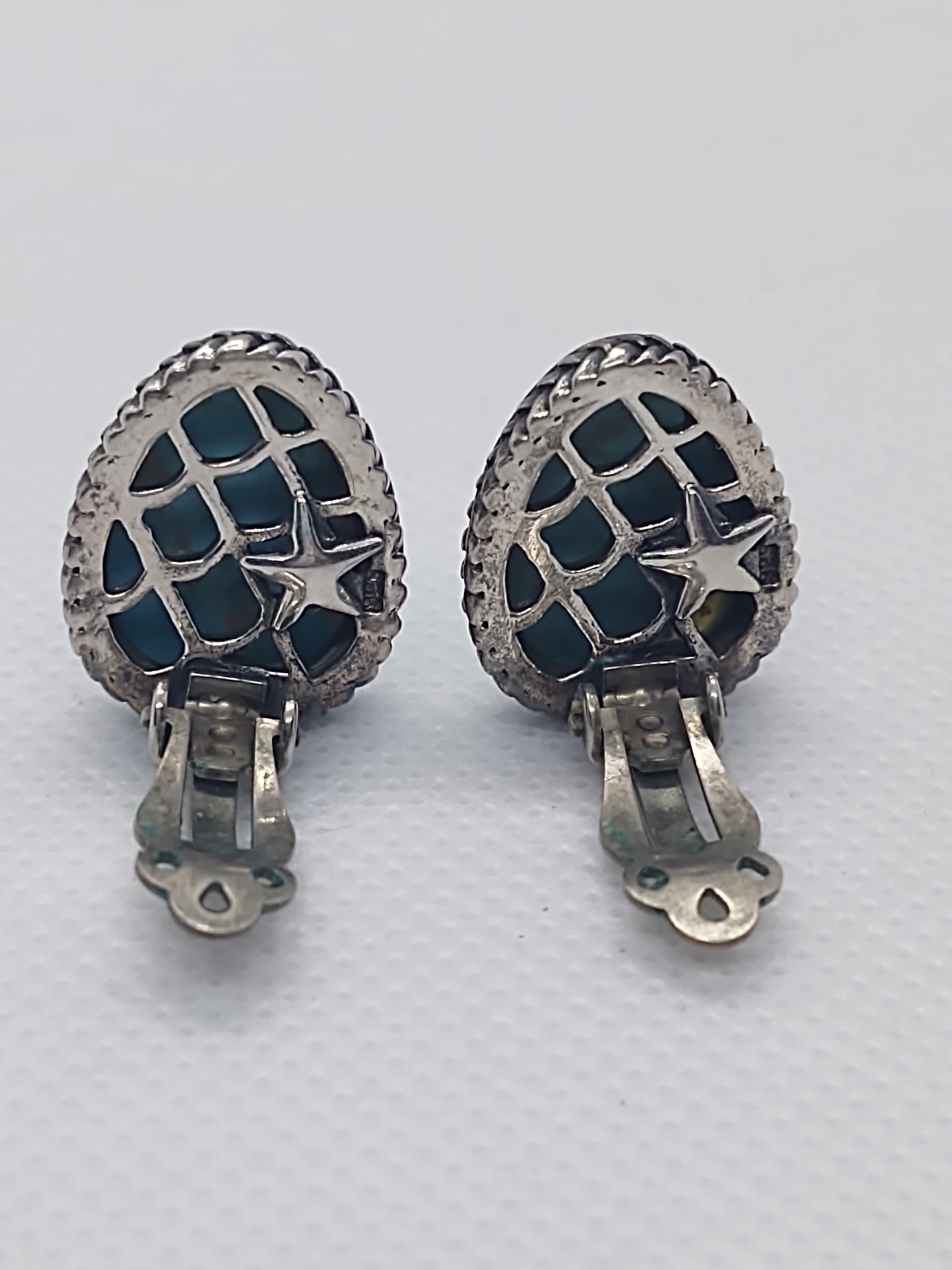 I found these earrings in a LARGE lot of costume jewelry. Obviously they’re sterling silver and I believe genuine turquoise, but I can’t find anything similar as far as the back with the star.