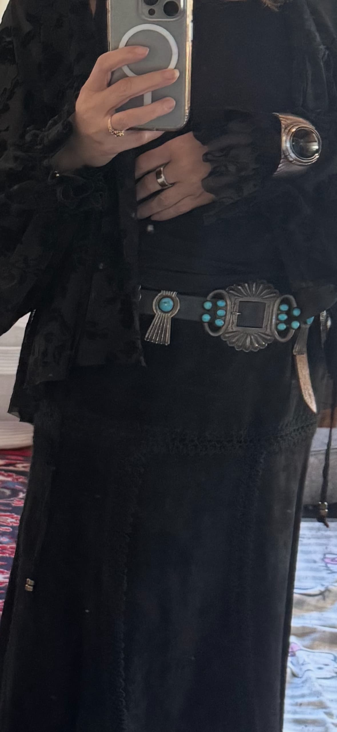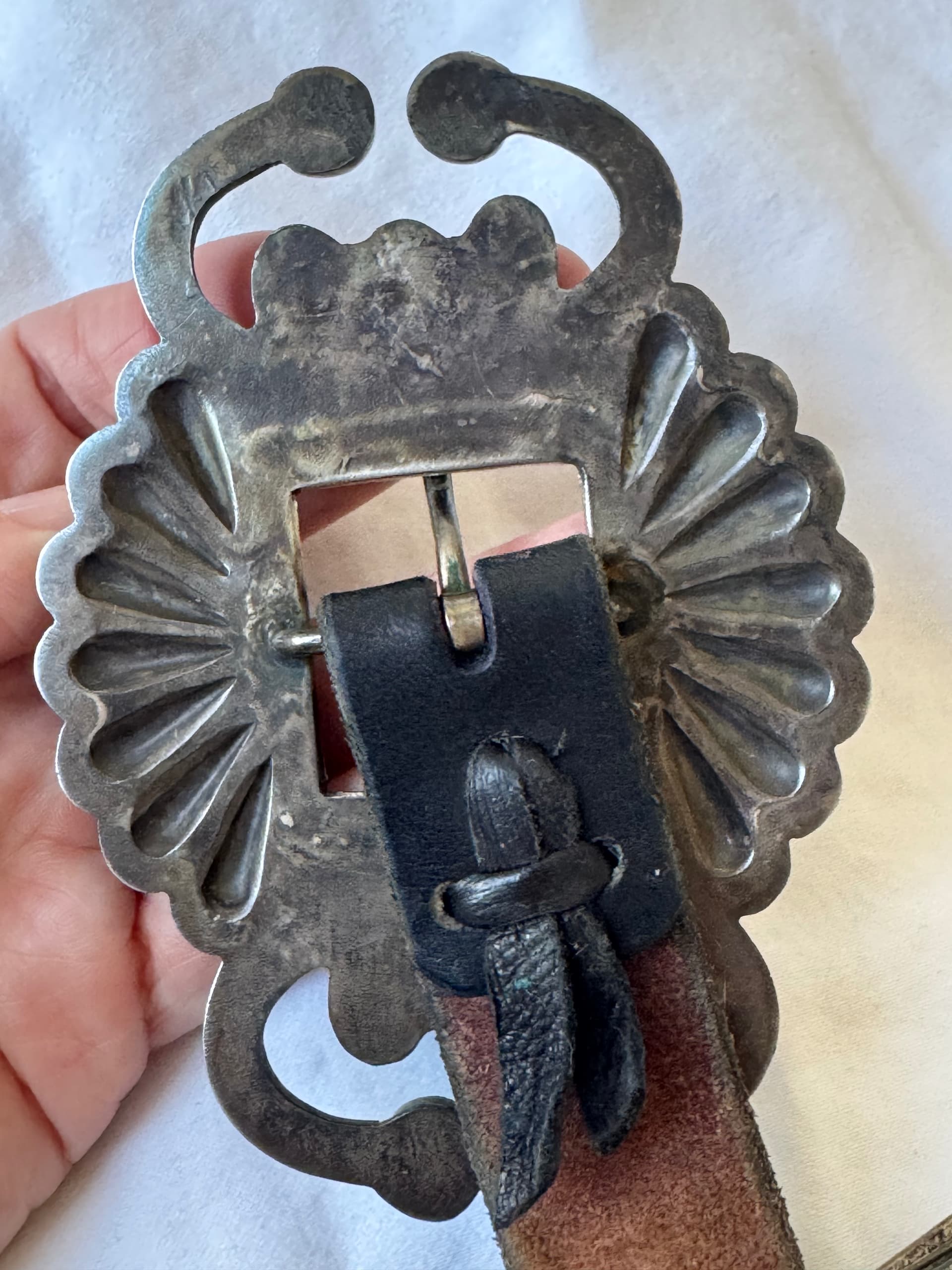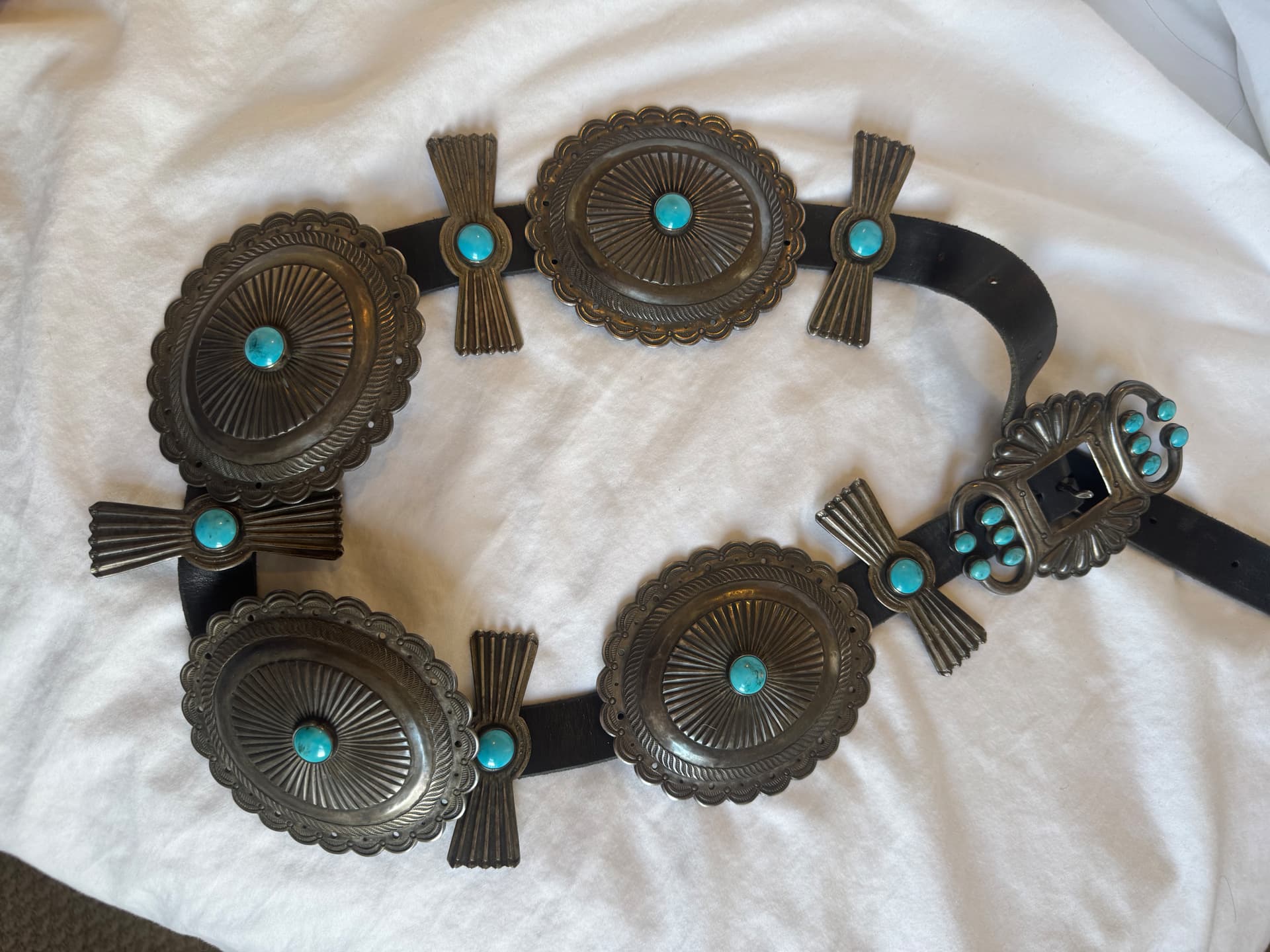 Welcome to the forum @tourmaline32. The concho belt you’ve inherited is stunning. Would you be able to share photos of the back of the buckle and perhaps one of the conchos? If you would also be able to measure the belt’s components, that would be great information to have, as well.