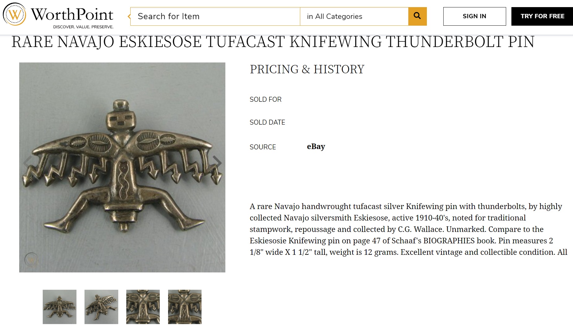 Great knifewing! I believe it may have been made by Etsitty Tsosie, sometimes also called Eskiesosie, a very well known Navajo silversmith that worked for C. G. Wallace and lived from about 1880-1937. If you google “Eskiesosie knifewing” you will see similar examples.
