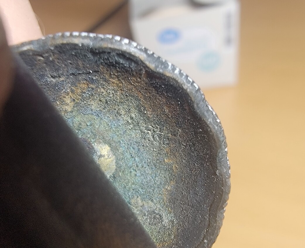 I came across this piece while thrifting. I’ve been hoping to find a nice hat band, but I think this is much more than I could have hoped for! I looked behind each piece, hoping for a clear mark, but I have only found partial markings. I don’t want to take anything apart and the backsides are really a mess. I am including photos of the piece and what I found on the backside of one of the silver pieces. Is there any chance anyone can ID this for me? I’d love to know all about it! It has a home with me on my black felt cowboy hat, and I can’t wait to wear it! Thanks so much!