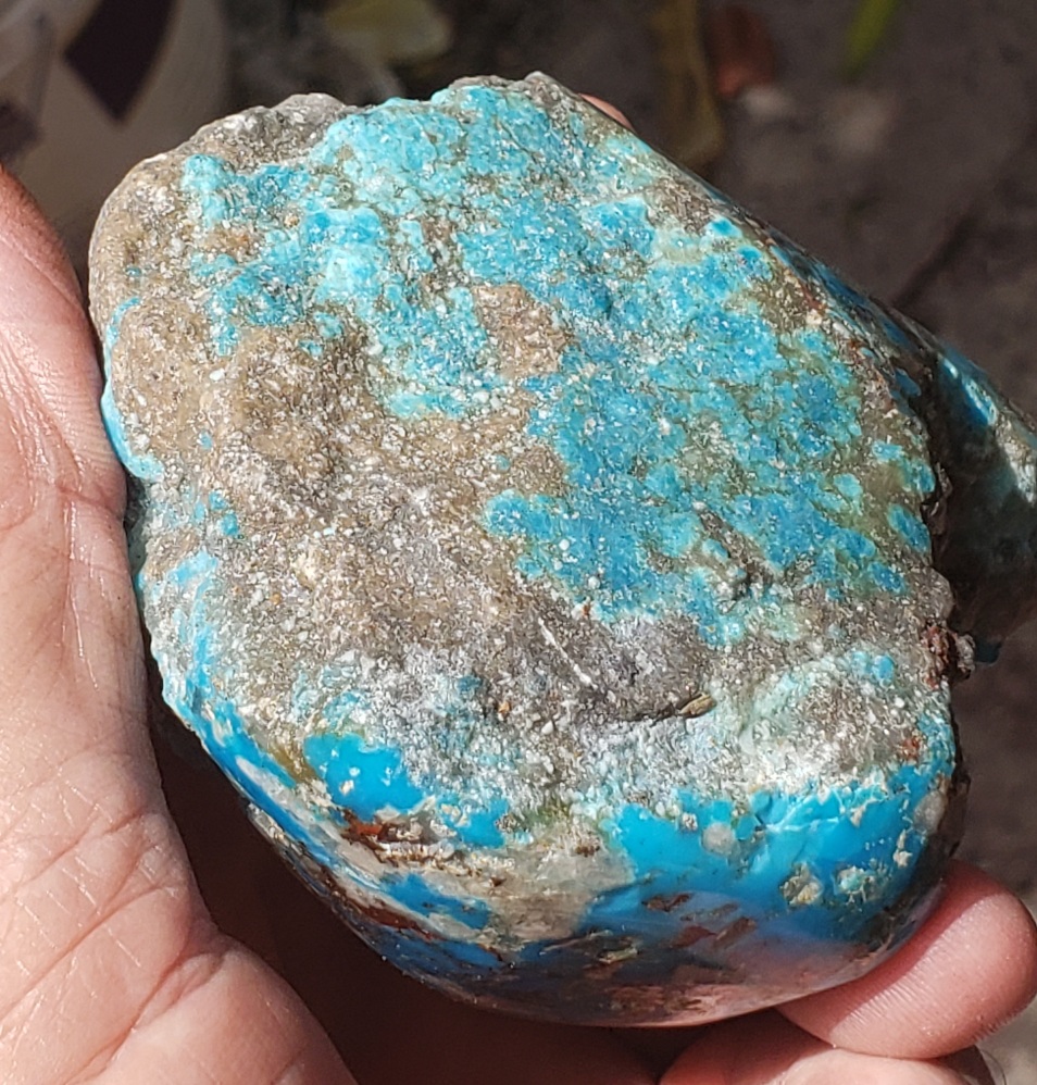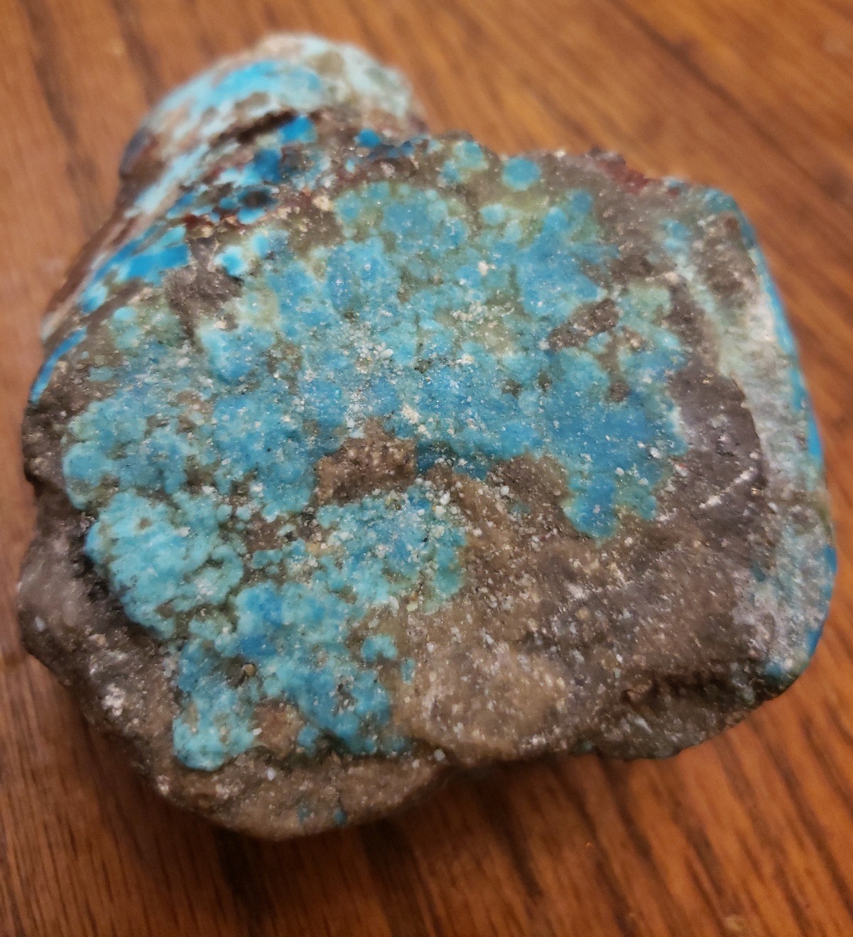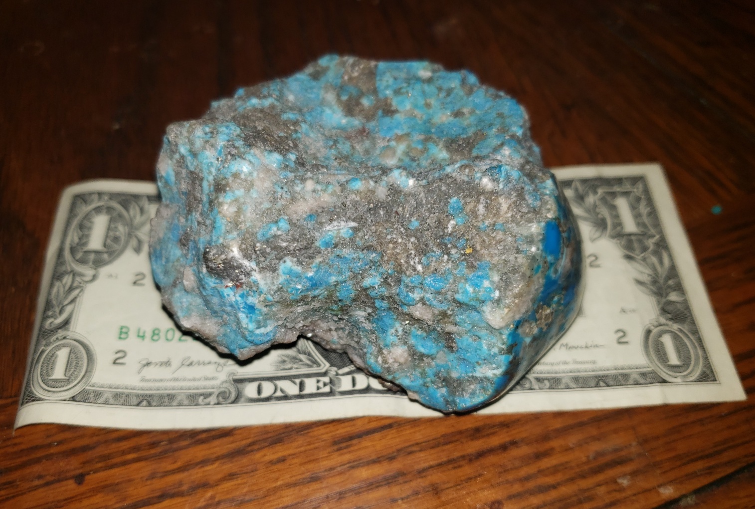 I forget what the yield is per pound of rough, I am thinking it was something like 1500 carats. That depends on the rock, some can have a better yield and others more waste. It looks stabilized? I would lean more Kingman. Seeing that around $1.25 per carat, going with 1500 carats x .86 gives us maybe 1290 carats. If you break it down that way you are looking at $1612.50. Of course definitely a lot to do before you get there. We had some not as nice as this come through for $50 a pound, I would guess yours somewhere around $200 - $250.