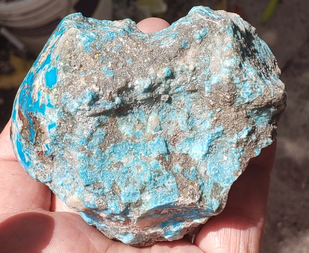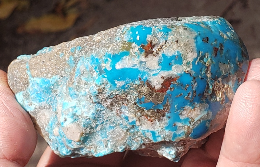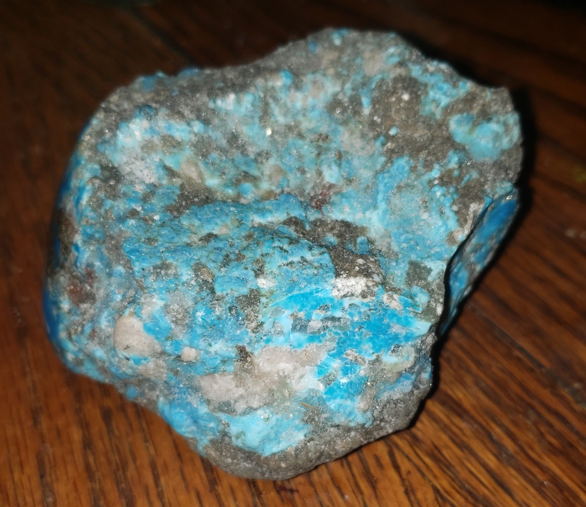 I forget what the yield is per pound of rough, I am thinking it was something like 1500 carats. That depends on the rock, some can have a better yield and others more waste. It looks stabilized? I would lean more Kingman. Seeing that around $1.25 per carat, going with 1500 carats x .86 gives us maybe 1290 carats. If you break it down that way you are looking at $1612.50. Of course definitely a lot to do before you get there. We had some not as nice as this come through for $50 a pound, I would guess yours somewhere around $200 - $250.