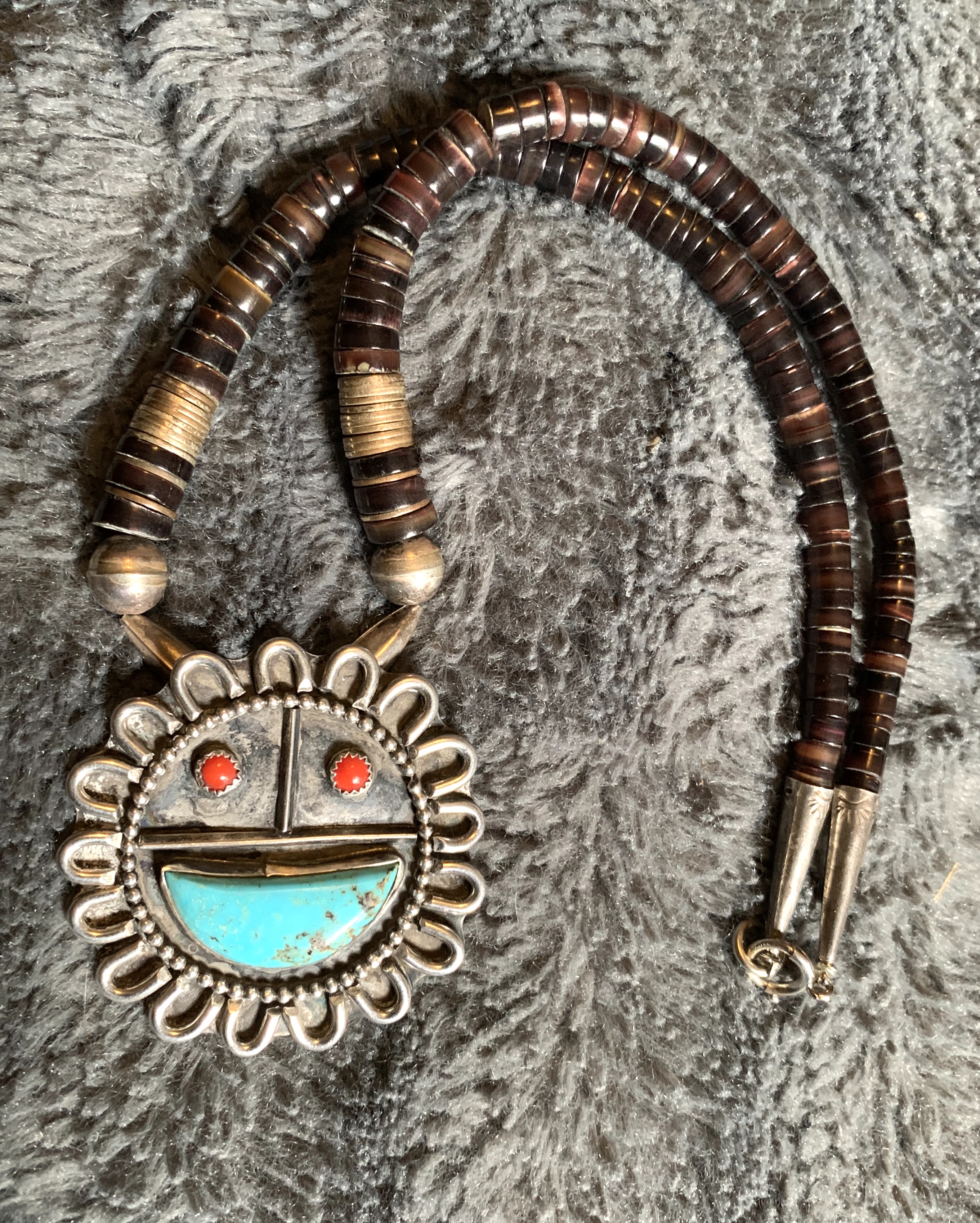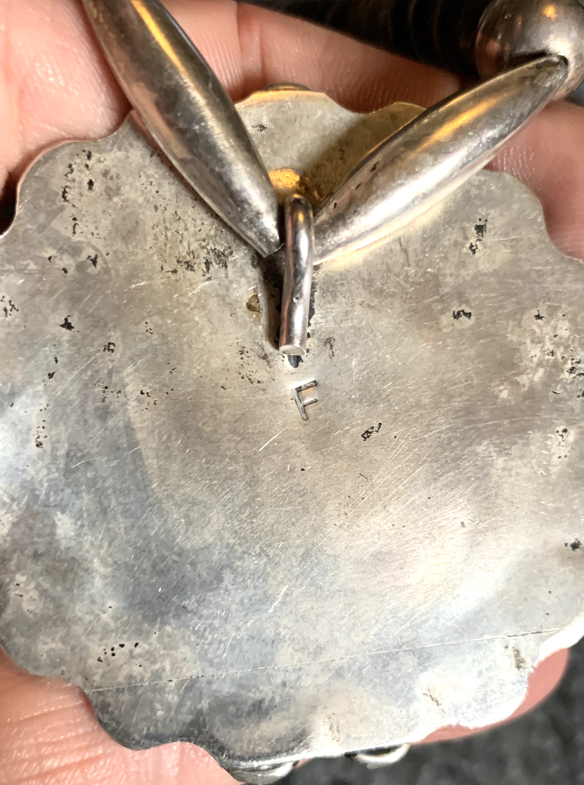 Looking for some help on this sunface necklace. The seller said it was Zuni but I think it’s Navajo. It’s signed F and there are a lot of artists with that initial so it’s hard to narrow it down.