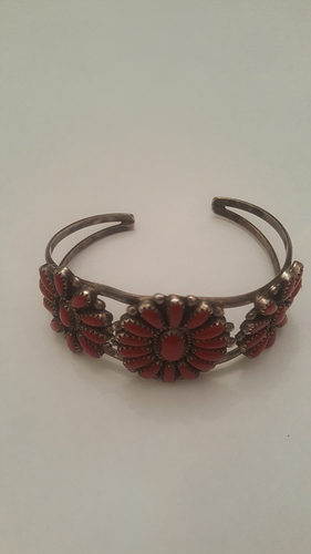 I need help identifying this beautiful coral cluster bracelet please. If I had to guess I’d say it’s early Vernon Haskie he’s known to have done cluster work in the beginning of his career. Any help would be appreciated.