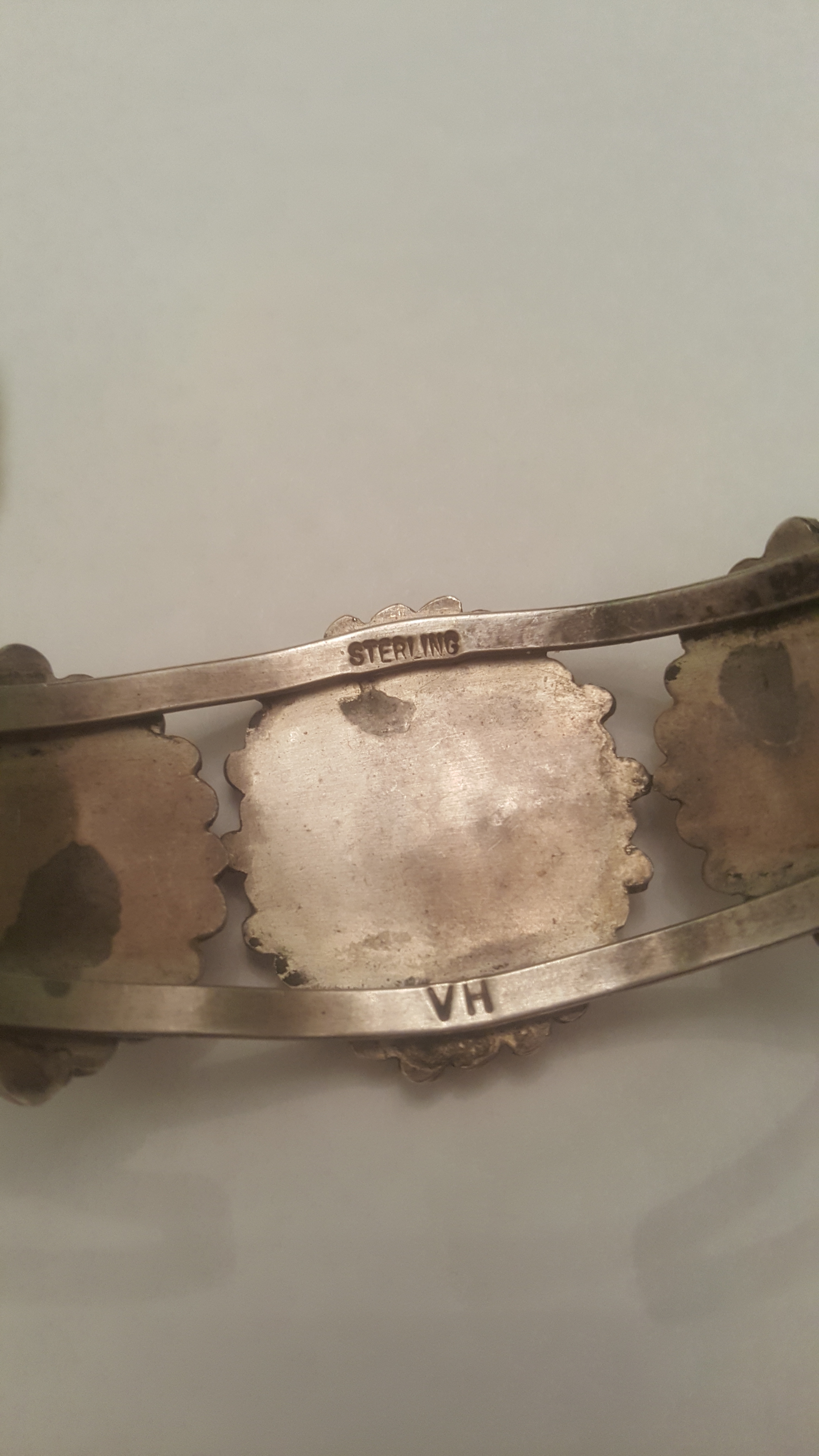 Hello, thank you for sharing. We see this style frequently and with that hallmark. It is not made by Vernon Haskie. I will work on getting a name for you. Can you send an image that shows the stone better? Thank you.