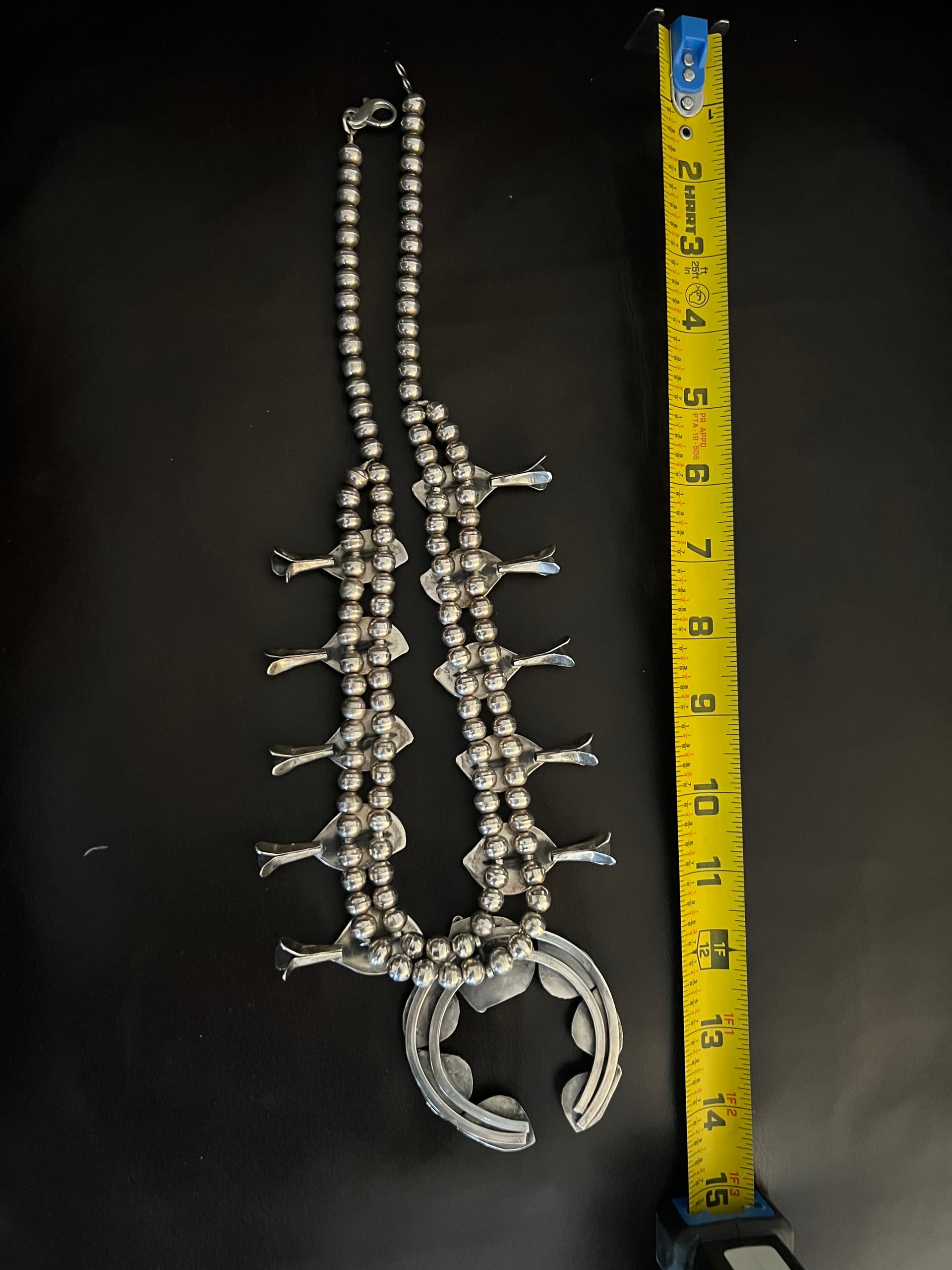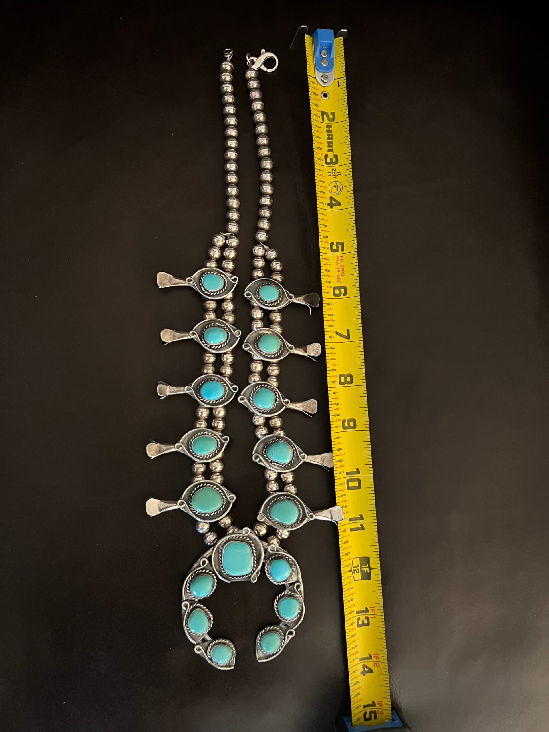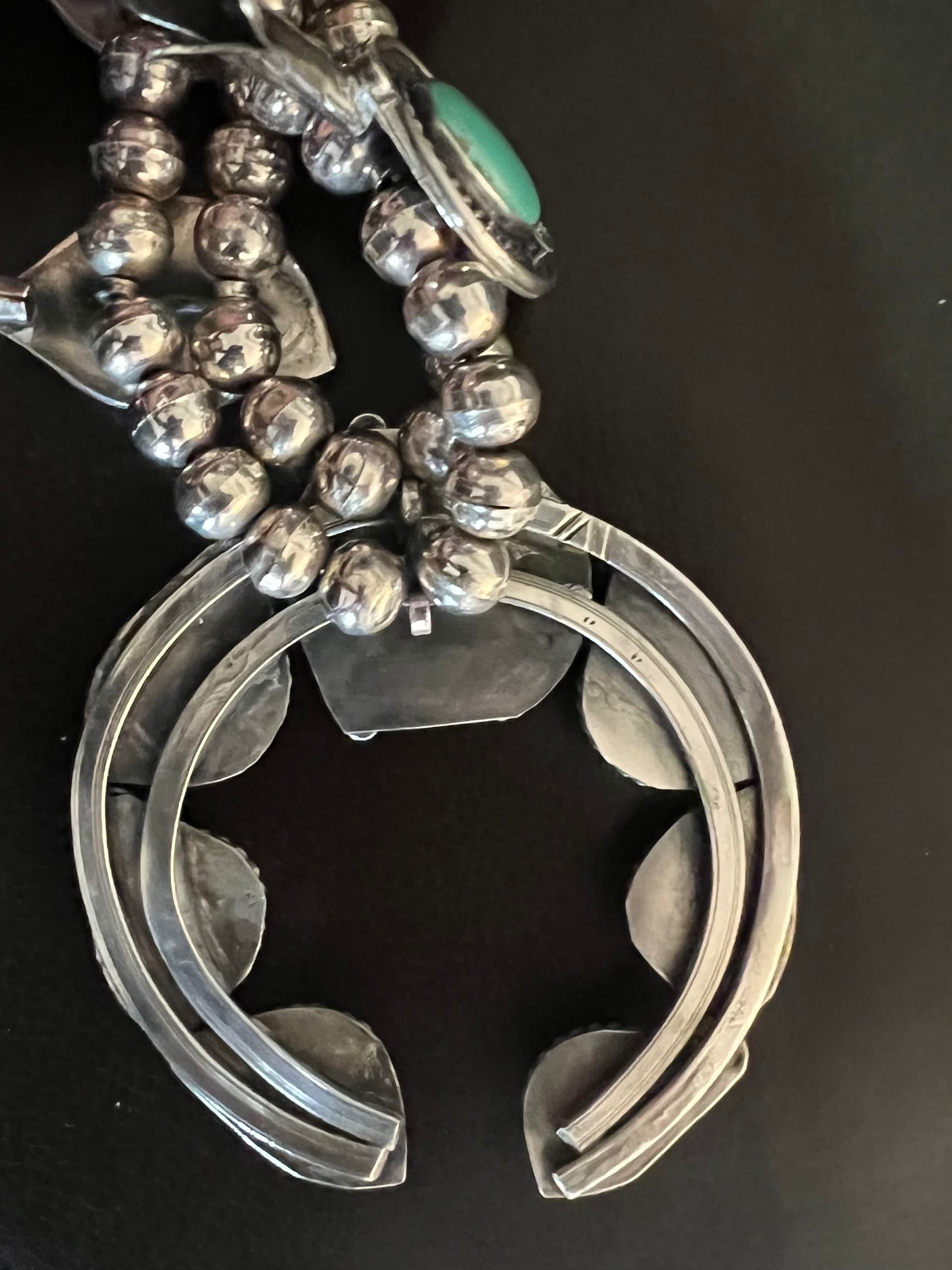You may know this, but it is a squash blossom necklace, and most likely Navajo made. Squashes aren’t really in my wheelhouse, others here are more knowledgeable in regards to them, but I have learned many were made in the 70’s - 80’s. I suspect these beads are machine made, but I may be wrong.