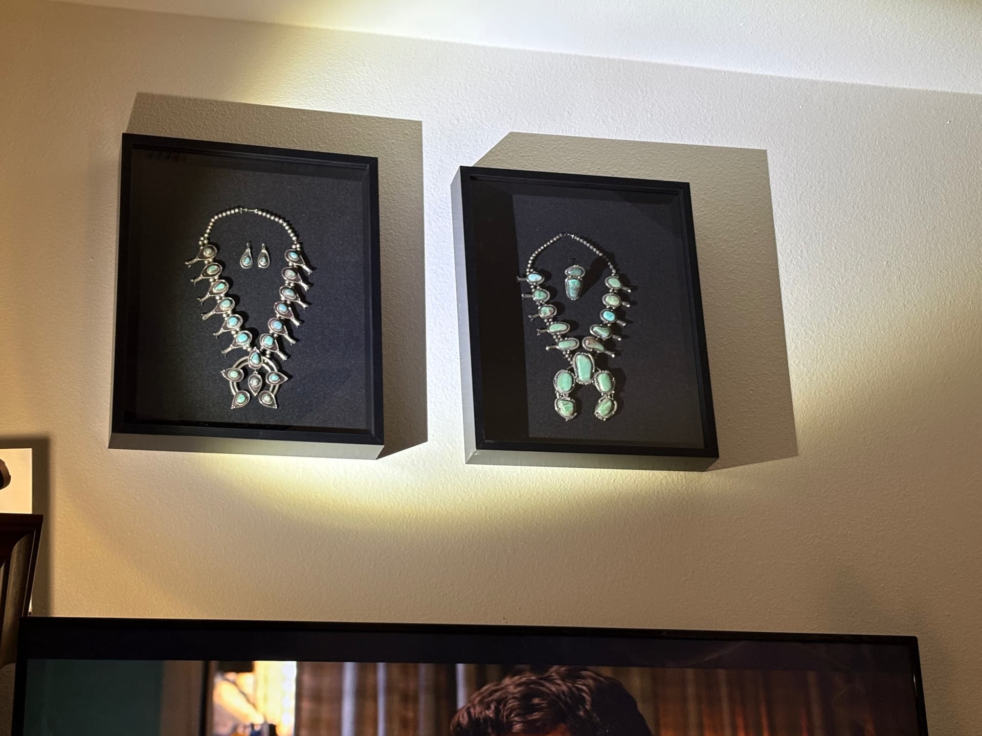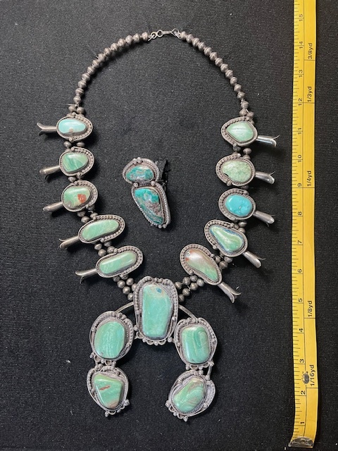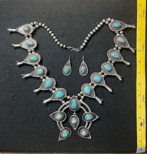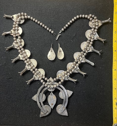 I’ve inherited 2 Squash Blossom necklaces that have been in our family for quite some time. I’d like to learn more about them as I only know my folks had them for a long time. I don’t see any markings on them but can tell you they are pretty large and heavy. I think one is for a man with matching ring; and the other is for a woman with matching earrings. I’ll try to attach pictures with my post. thanks for any information you might have about these.