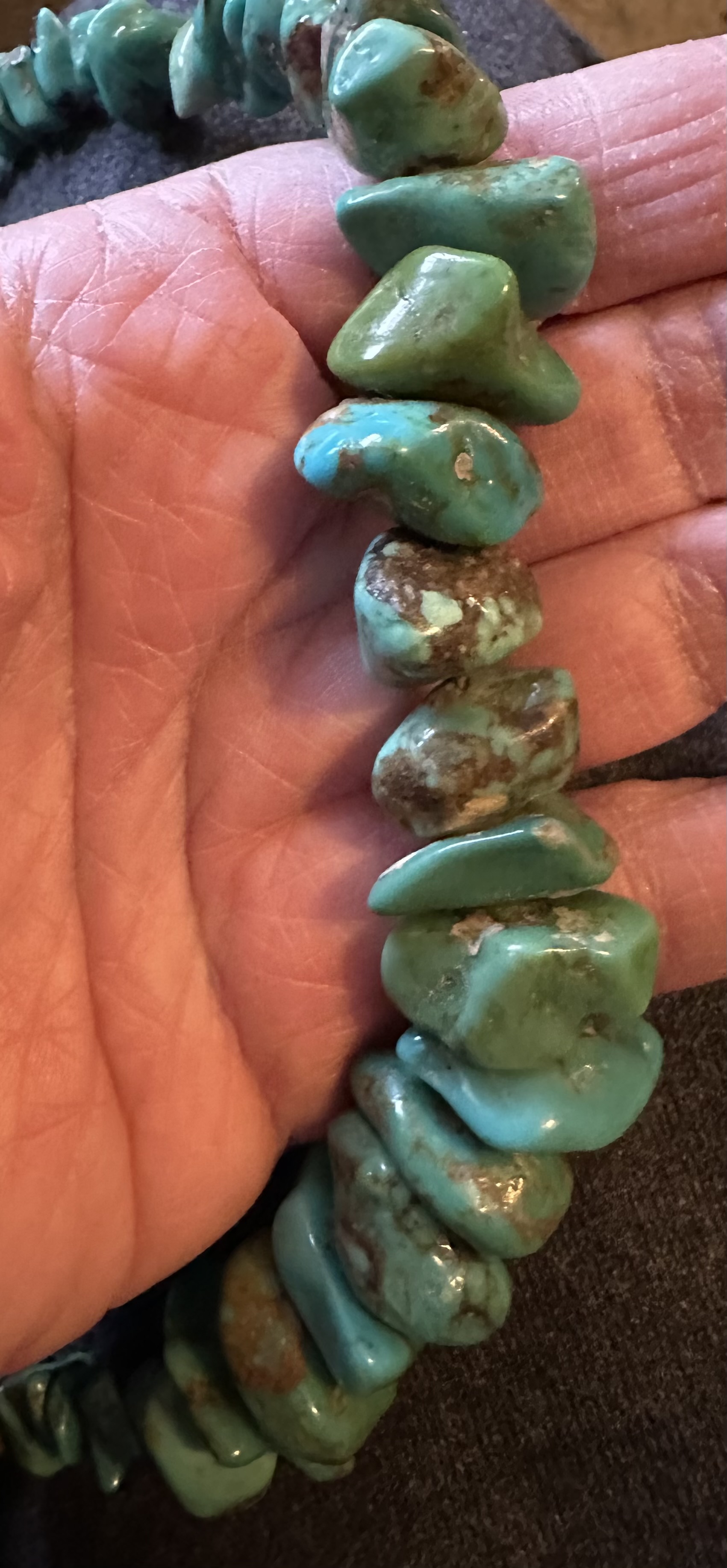 Purchased this at an antique store yesterday - true impulse purchase. I have not branched out into the green-hued turquoises but they are next on my list, so when I saw this I got it. Would appreciate any thoughts about what type it could be.