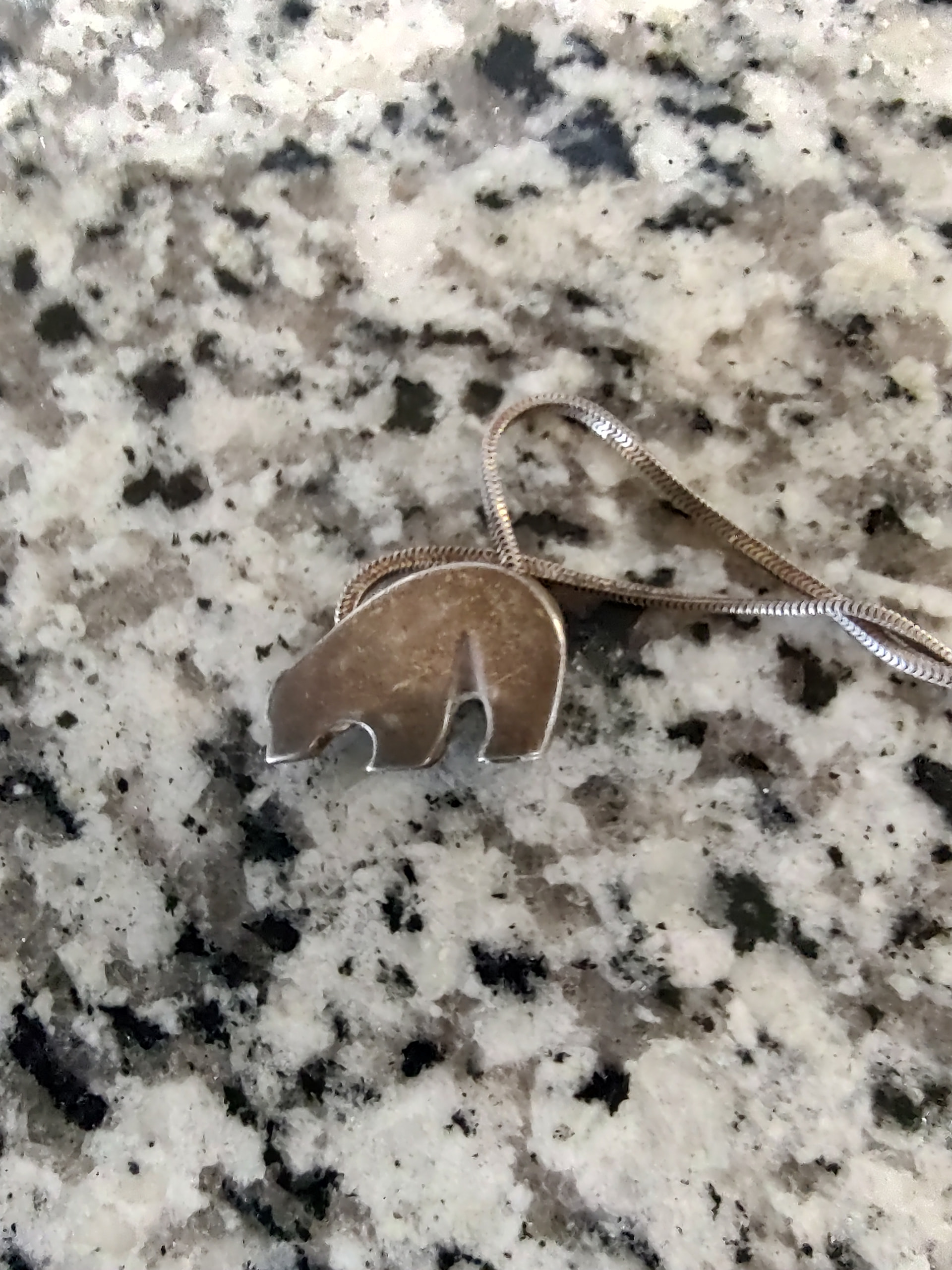 Please take a look at this lil bear pendant. The markings are on the rear of the bear. I did my best to try and get it photographed. I can read the “sterling” written