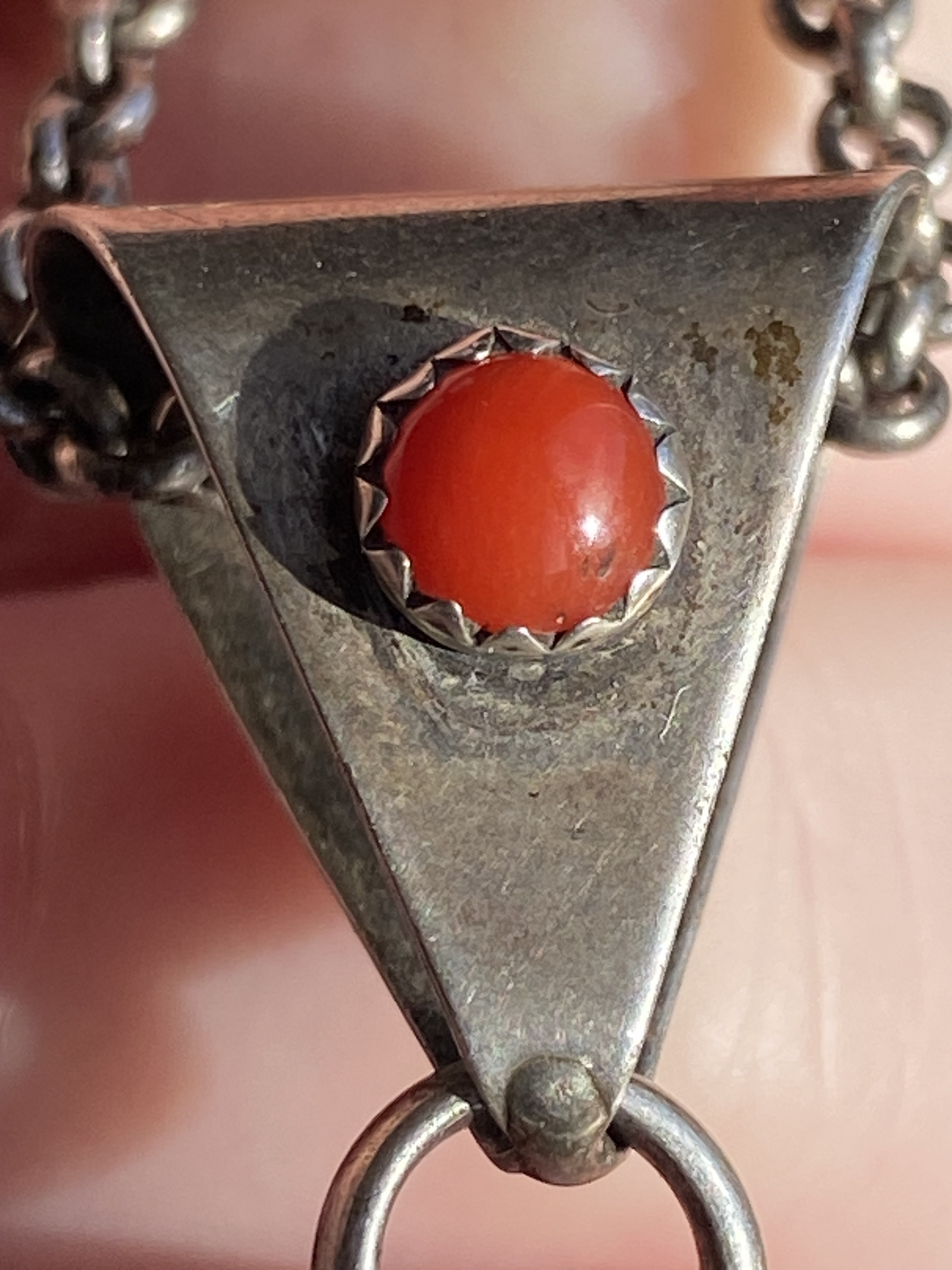 You pendant is very nice and the hallmark looks like Jenn Garcia. Vintage San Felipe Pueblo Jenn Garcia Spiny Oyster Turquoise Earrings Pendant | eBay