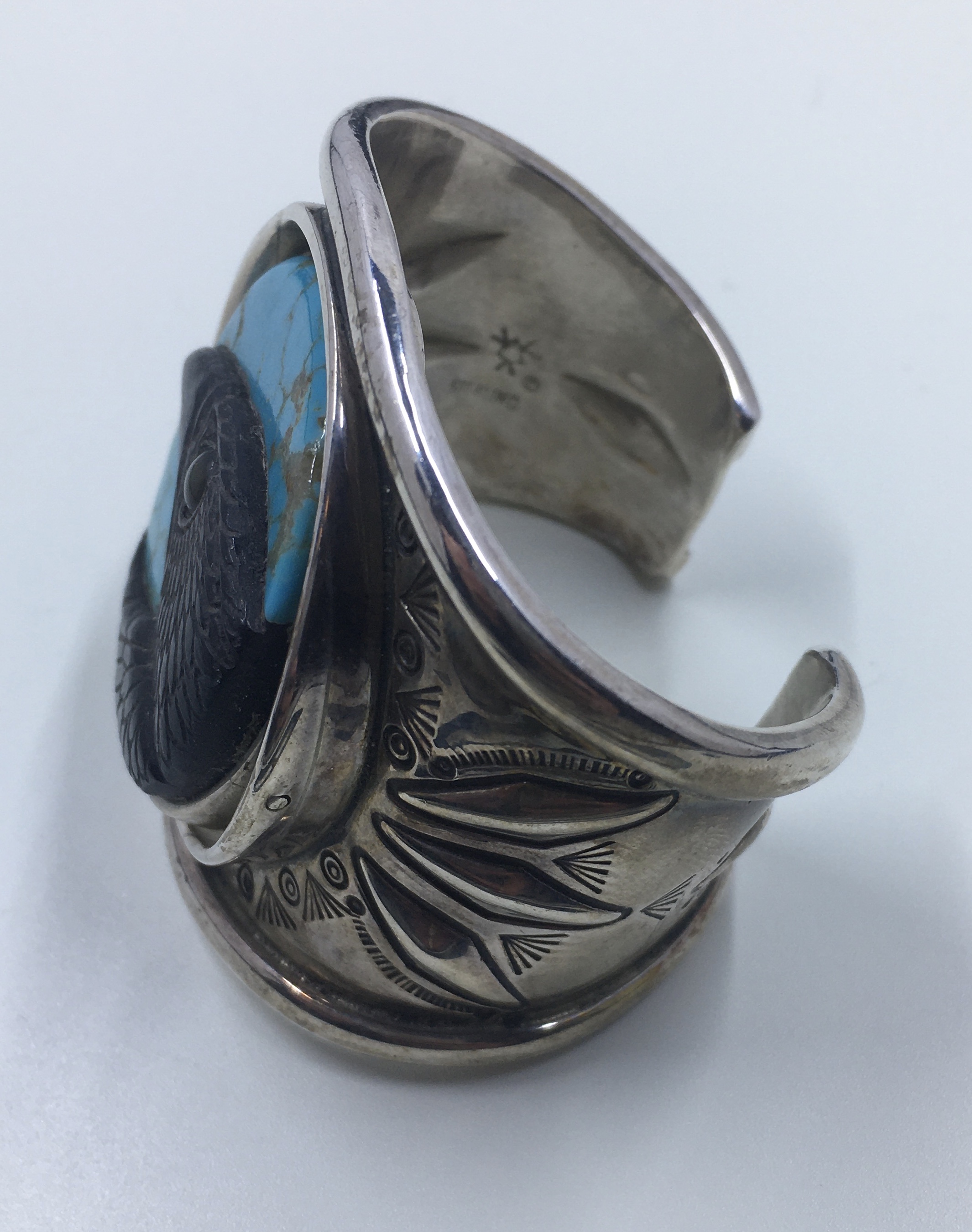 That is an amazing cuff. Love the raven; I love ravens anyway. I have no idea on the hallmark, but I agree with Jason that the silver has a Navajo feel. But somehow it has a northwest vibe to it, too.
