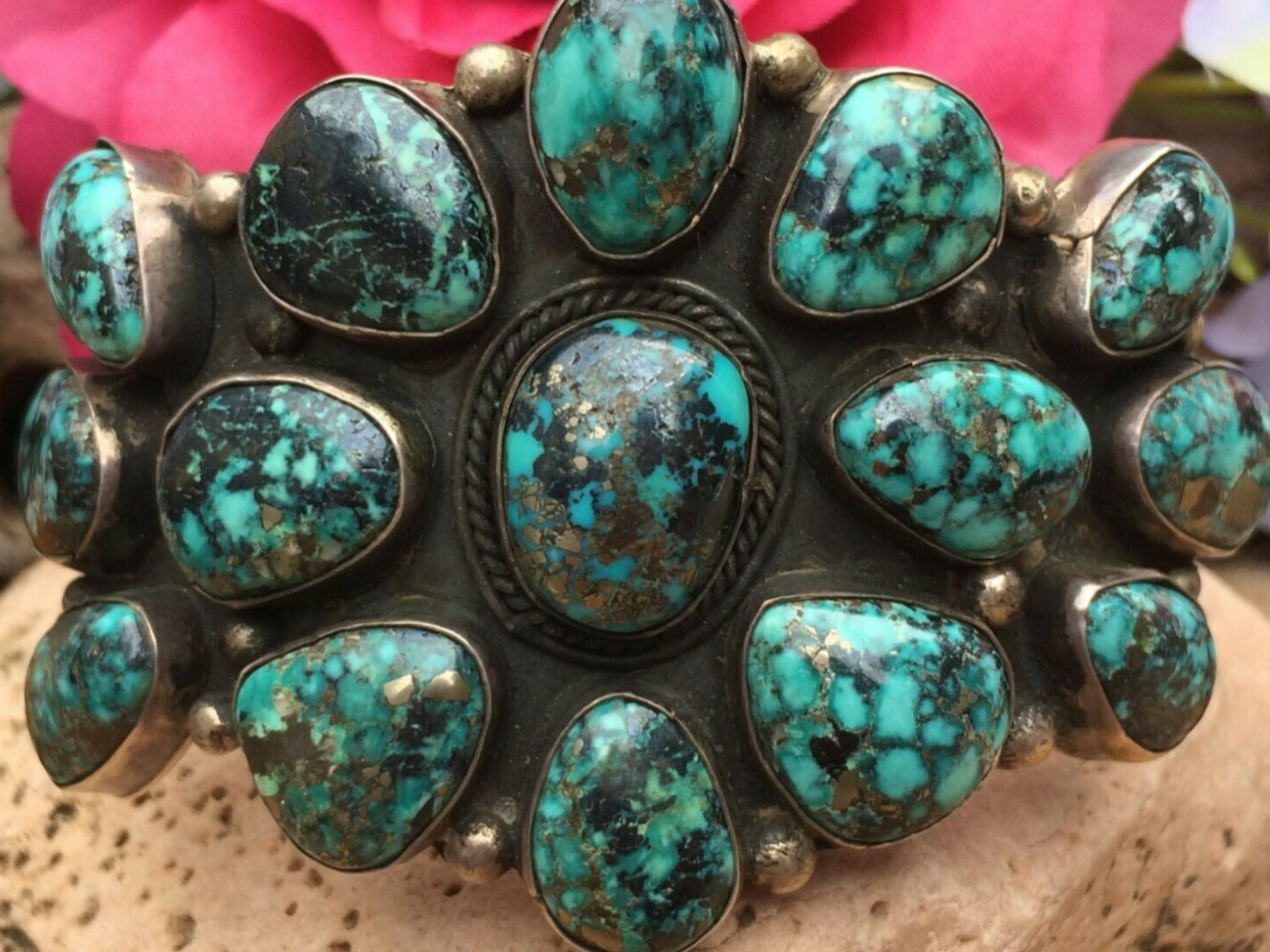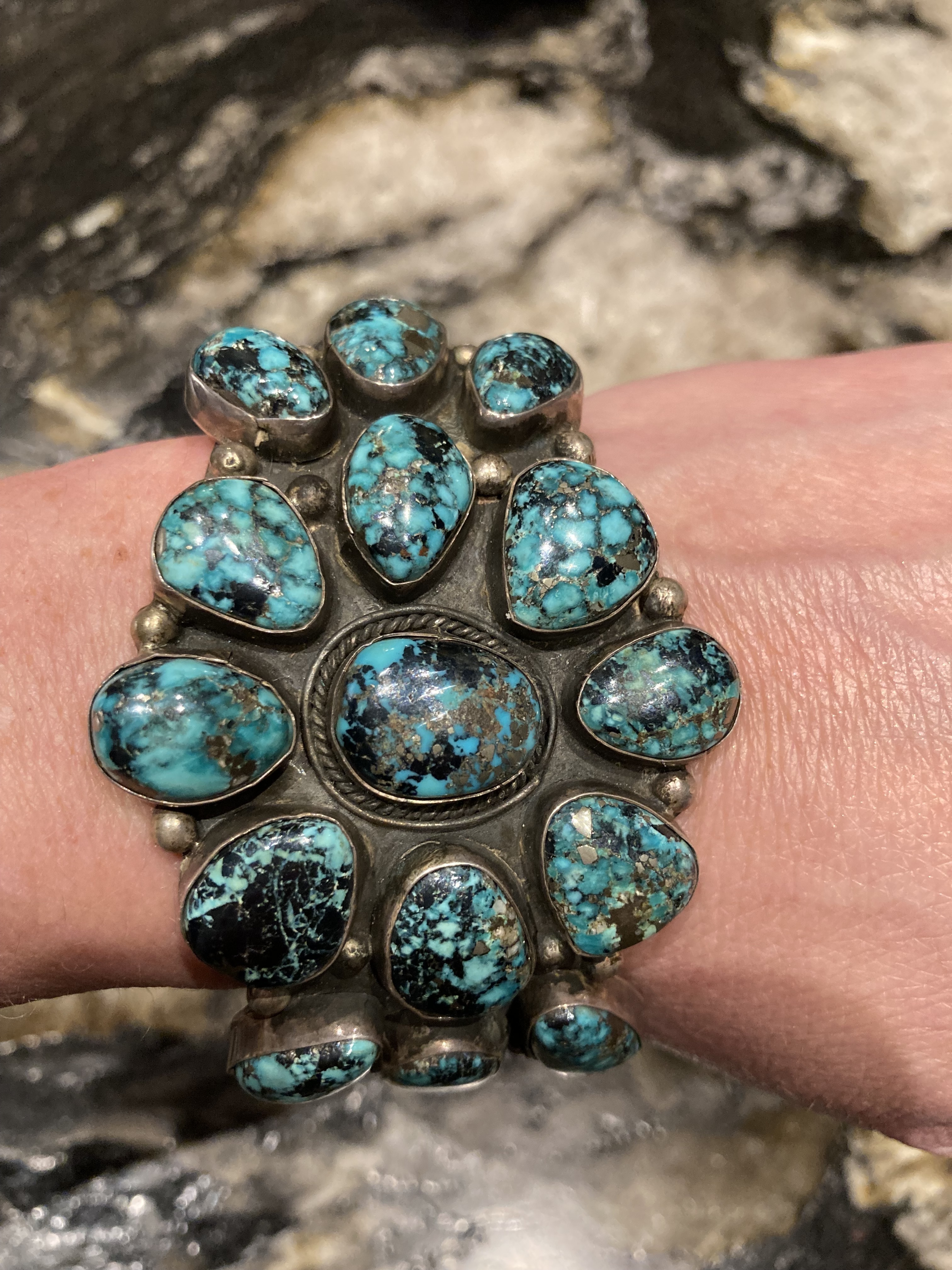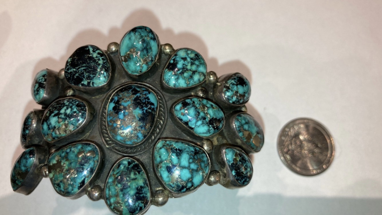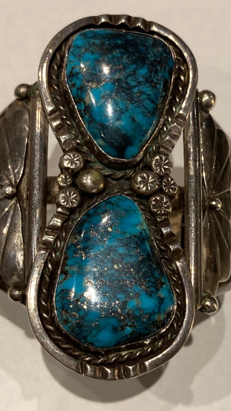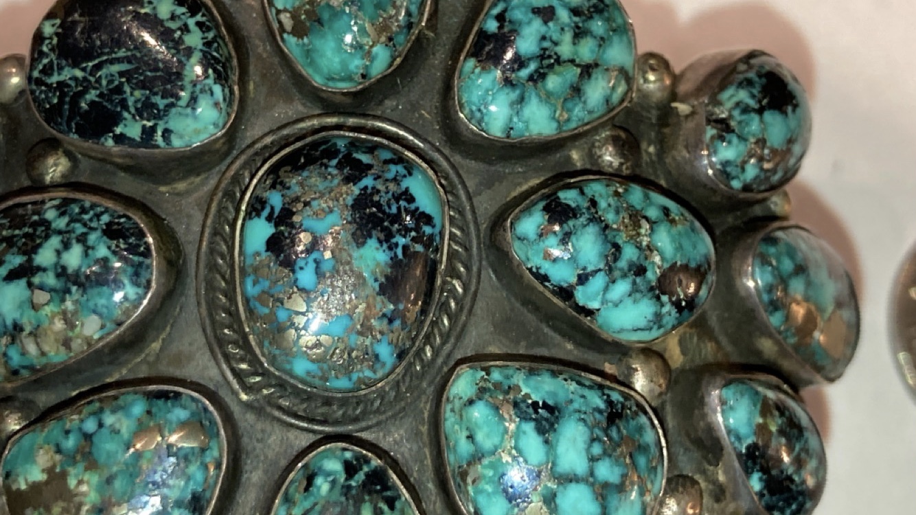 The Pilot Mountain bracelet, I was interested in sold by the time I inquired. Ended up purchasing the bracelets below. I’ve been really good at abstaining from buying but fell in love with the stones in these pieces. Looking for possible turquoise identification and value from those that would like to help. Hoping I made a good purchase.