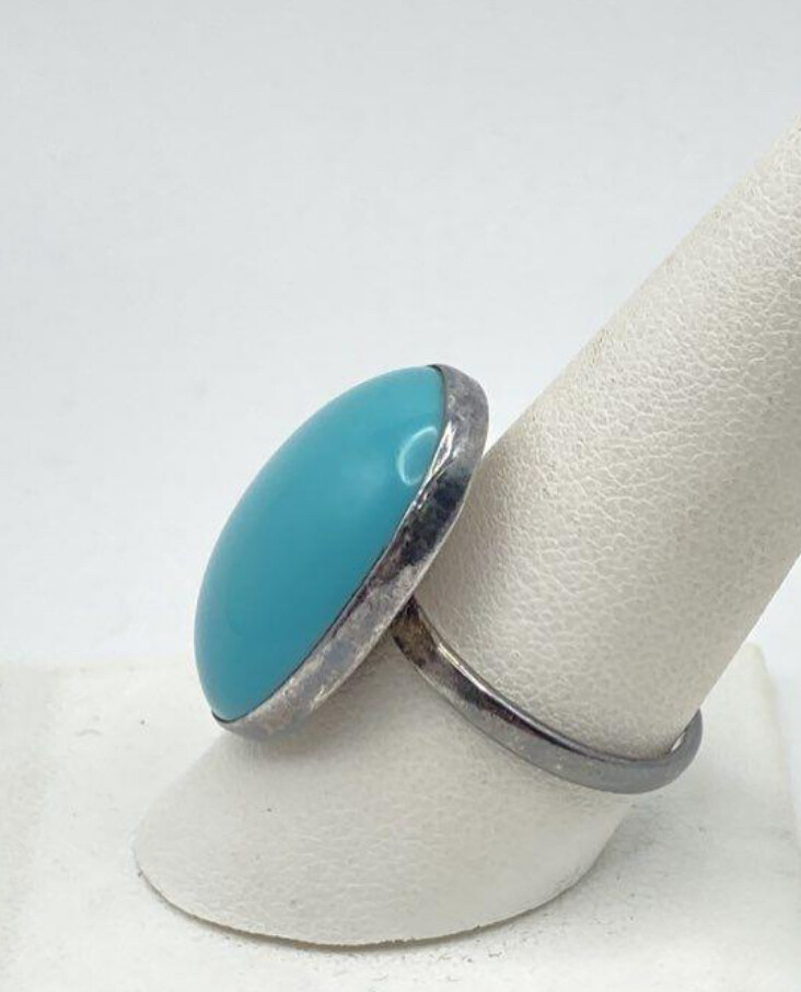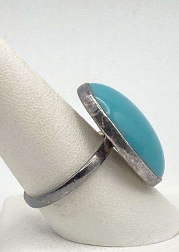 I think it’s turquoise because I bought it at an auction that had a jeweler onsite who said it was, but I think it’s stabilized. I’m not sure of any of that so I’m going to take it to a gemologist eventually.