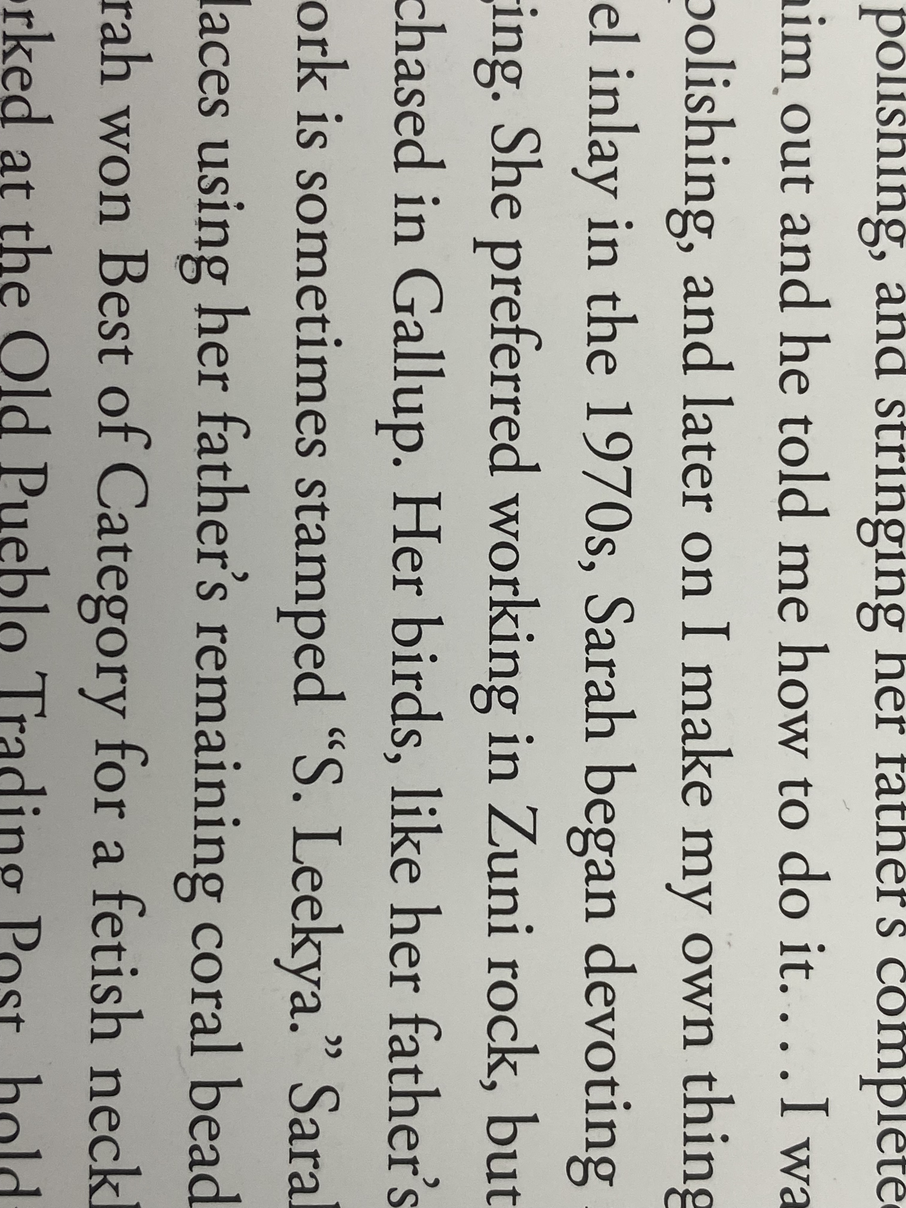 I think it’s referring to Sarah Leekya, the well-known carver who was the daughter of Leekya Deyuse. But there are things that don’t look right to me. Mostly, these fetishes appear to be sawed flat at the base, which is not how Sarah’s fetishes were. They were made in the round, by which I mean fully done to be in keeping with the animal’s form as she interpreted it. Her birds sometimes had a pedestal sort of foot, but not flat.