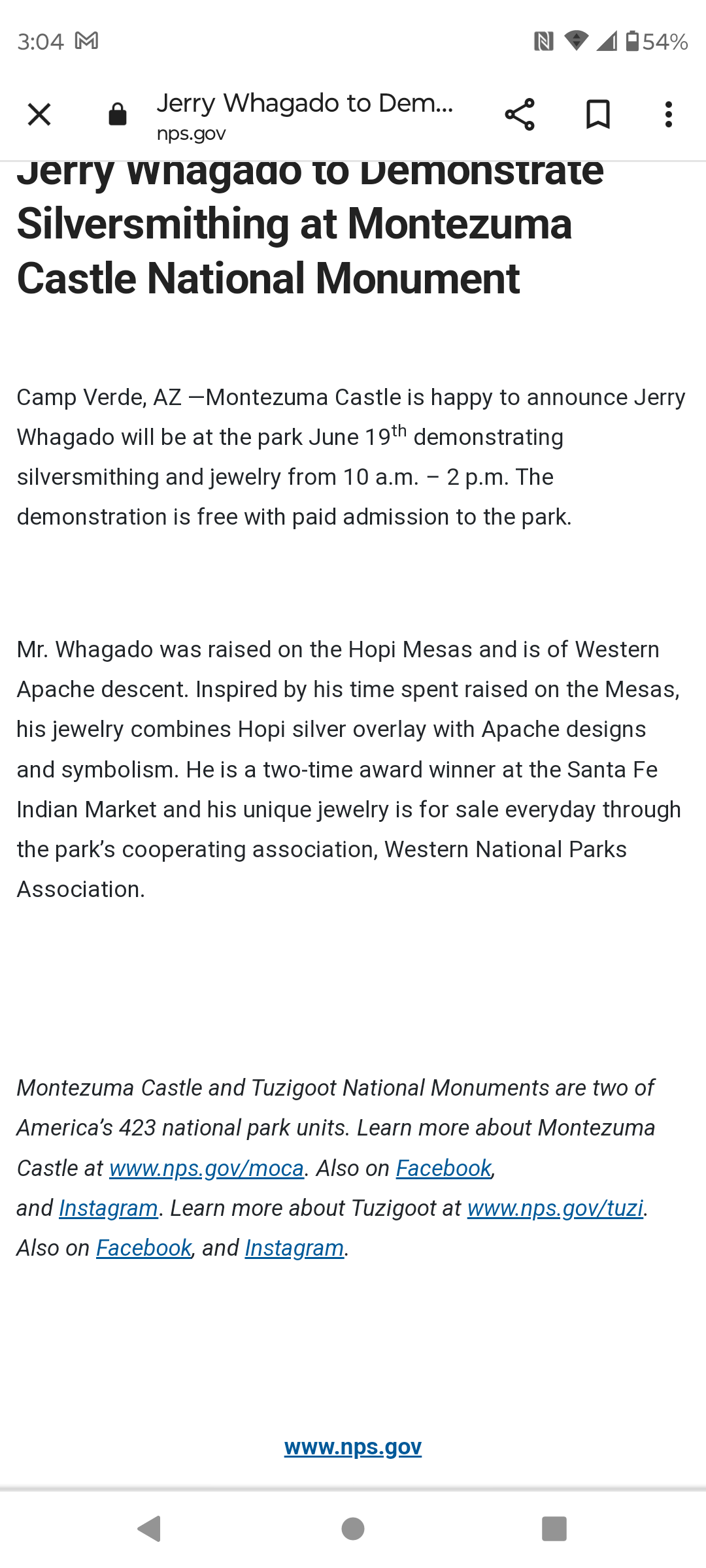 He has been a featured artist with the National Park service at Montezuma Castle National Monument and at Grand Canyon. Here’s a link to one of his more recent items for sale. Jerry Whagado Apache Jewelry – Sedona Indian Jewelry