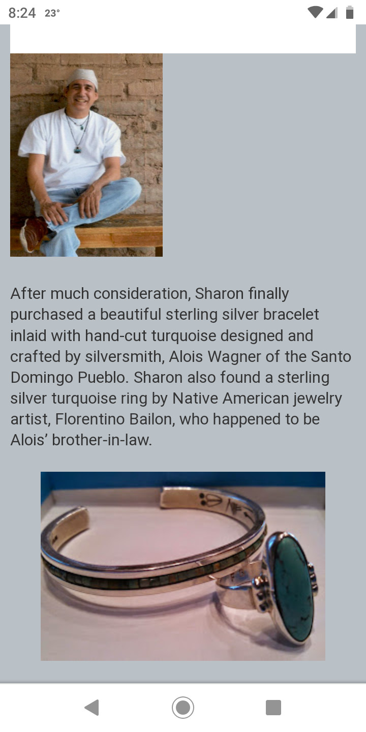 K, here is one of those really weird coincidences. I had read this article several months ago (but forgot about it) before I’d even joined this site, because it came up in my Google feed. After @Christibo found out the artist, I was googling Alois Wagner out of curiosity, and this article came up again. One of her cuffs is featured, and even weirder, the ring they mentioned they bought was by an artist that I have bought a couple rings from at the Native art market at the western art museum in Indianapolis (I hadn’t noticed that in the last read through). So weird.