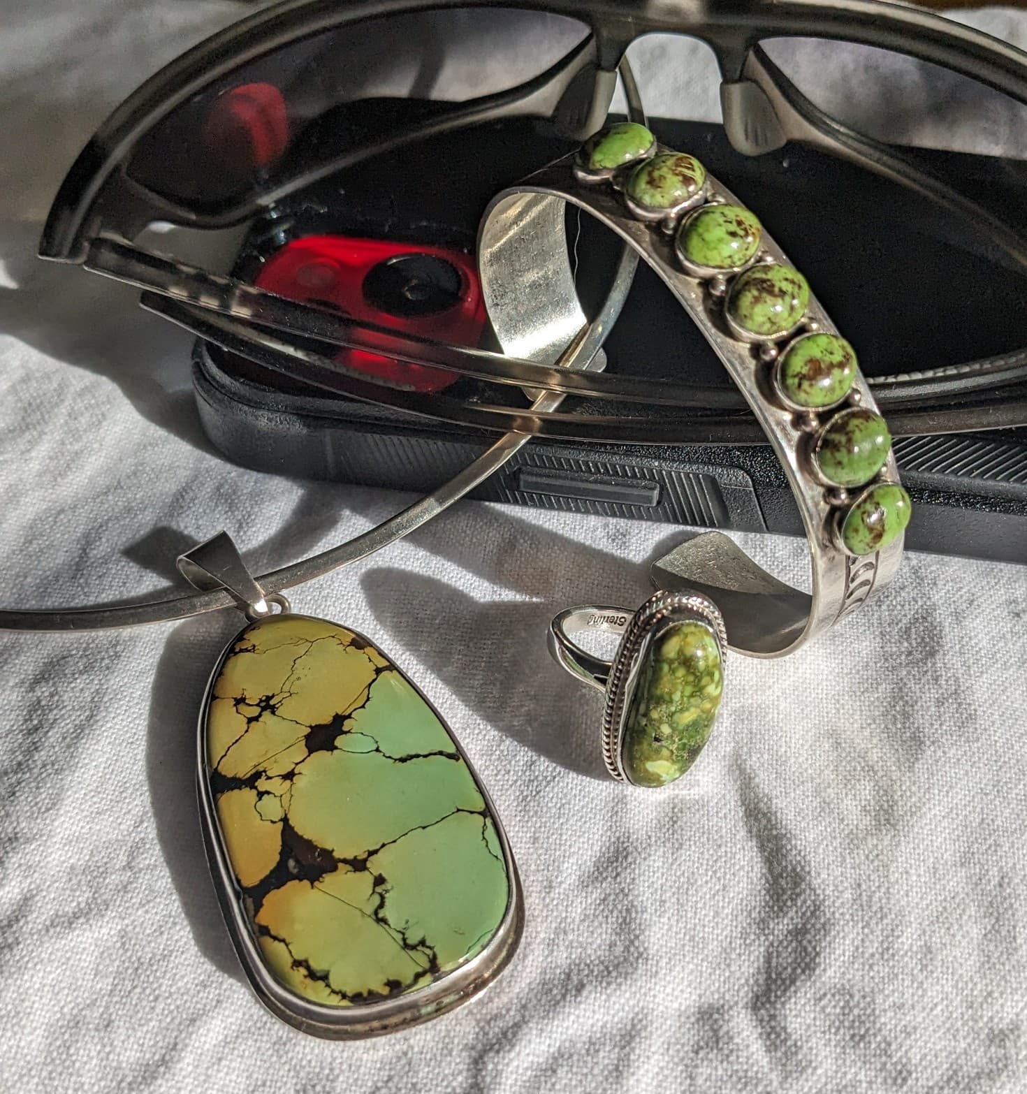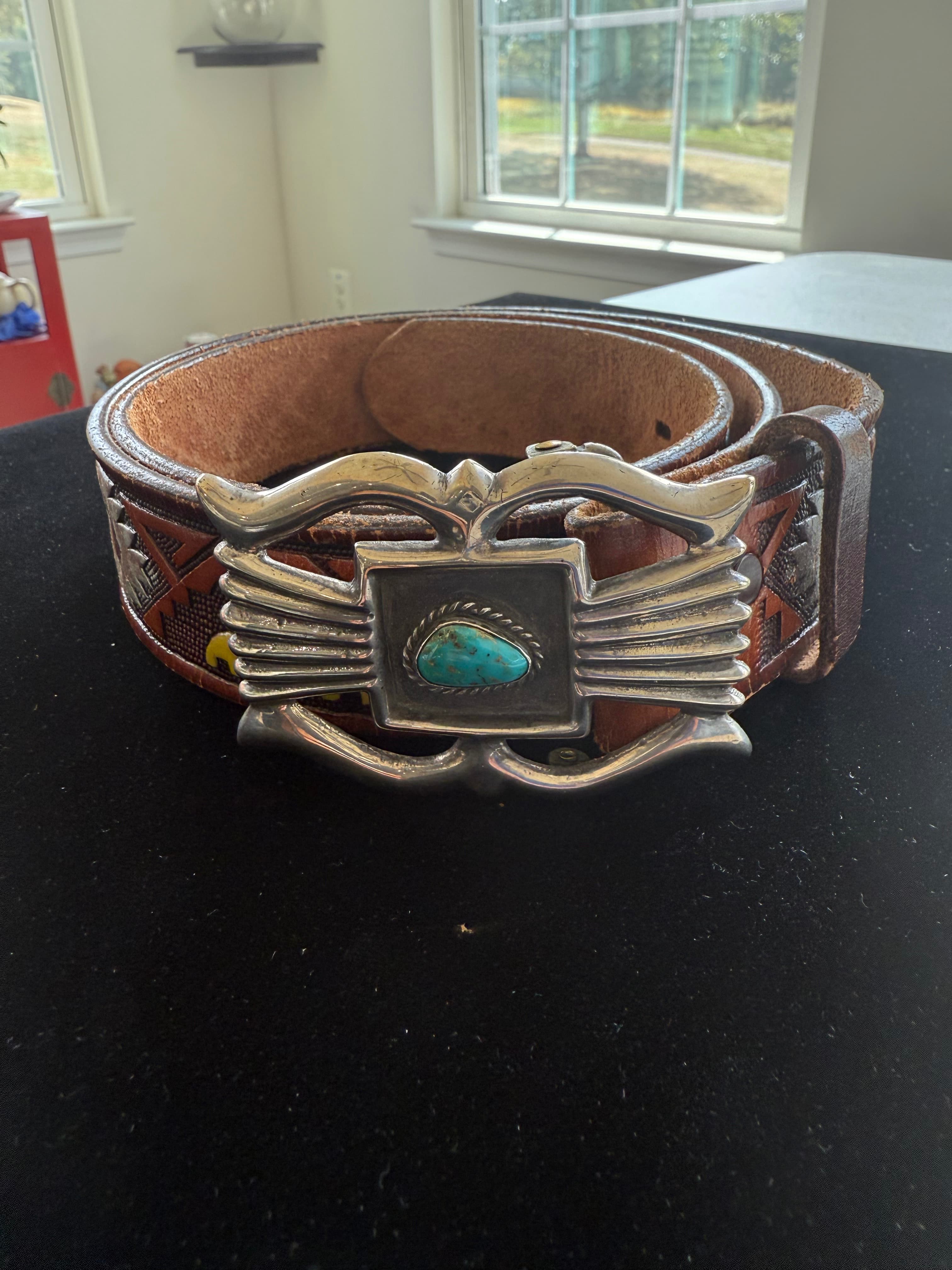 I’m wearing these pieces today. I found the pendant and a buckle at the first pow wow I have ever attended a few months ago. The pendant was $100. There are some cracks in the turquoise but I didn’t mind them so much. It’s pretty stabile in the setting. Not sure if the left hand ring finger is native though. Have a blessed weekend all ![]()