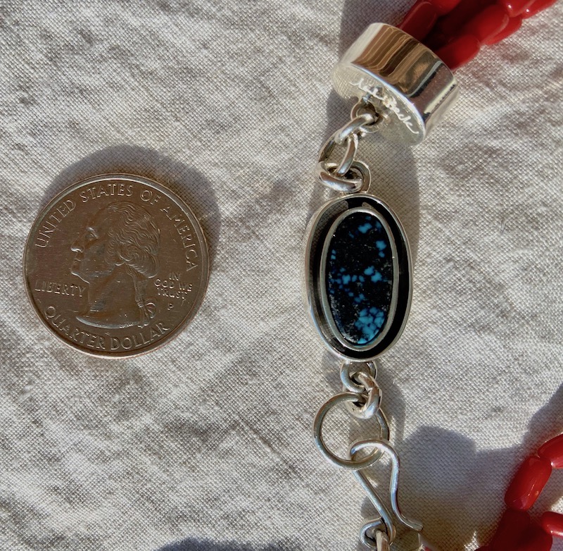 This last one was a source of some controversy when I posted it here… Some felt it may have been dyed magnesite, but it’s a reputable artist (Clarence Bailon), and my gemologist looked at it pretty closely and said that it was Chinese turquoise, she thought. It’s a nice cuff no matter what it is.
