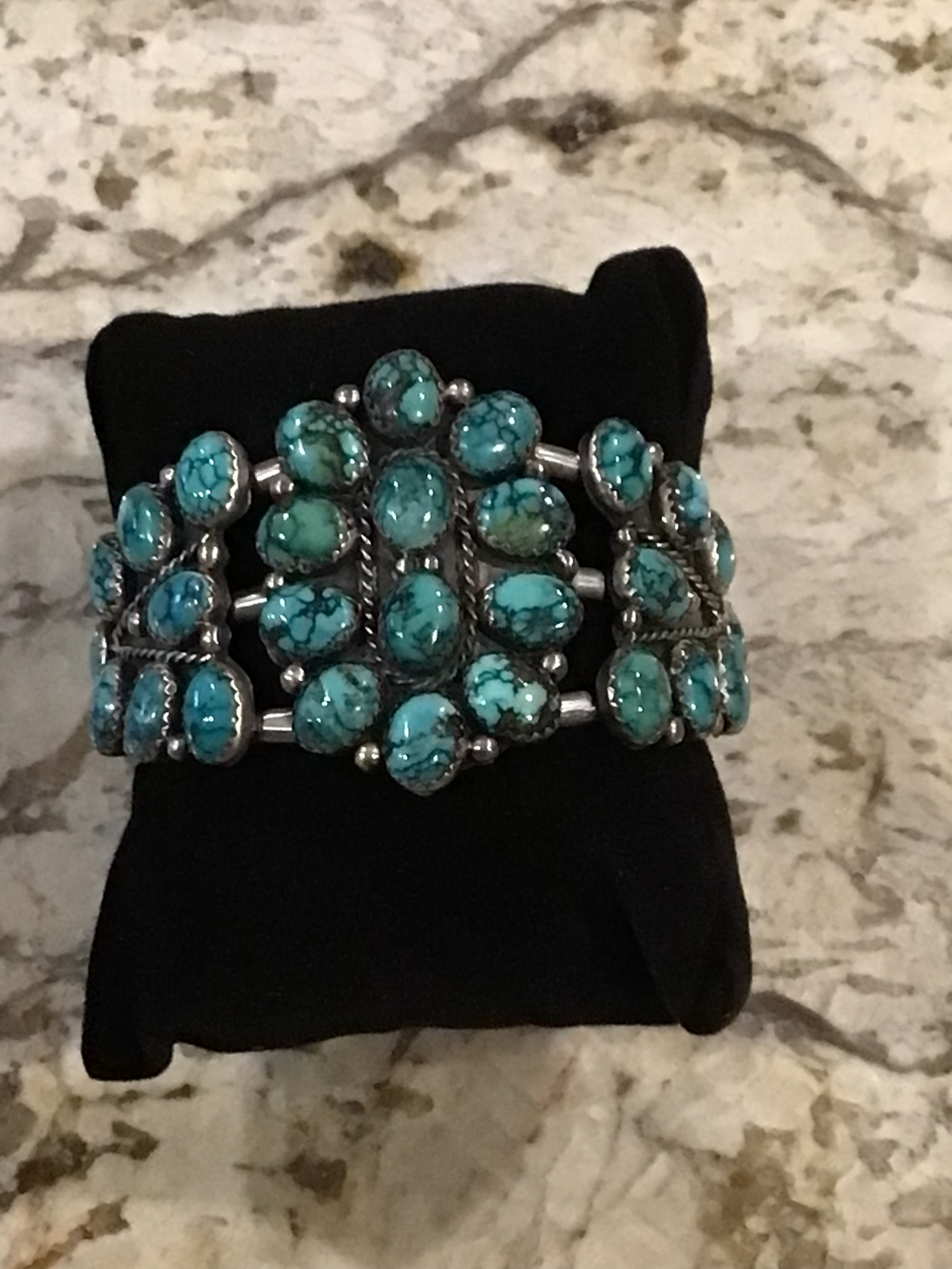 Wow! Fabulous! The top piece with the deep blue is amazing! Funny, I’ve gone through stages of collecting where I’m attracted to certain styles of jewelry or types of turquoise. Right now the deep blue spiderweb has caught my eye. But it’s great to see the variety of spiderweb in your pieces - that last cuff is wonderful, the turquoise reminds me of an older ring I have: